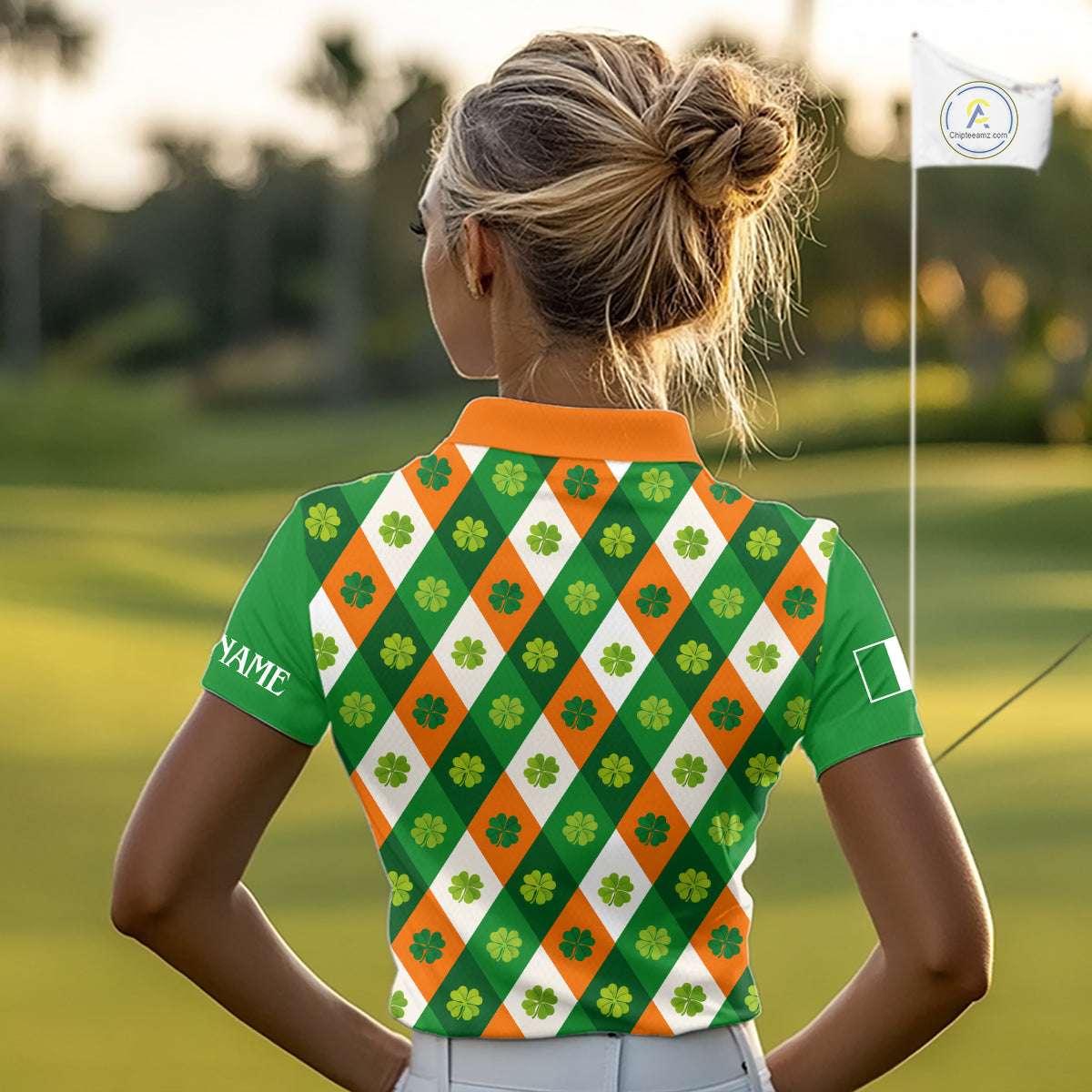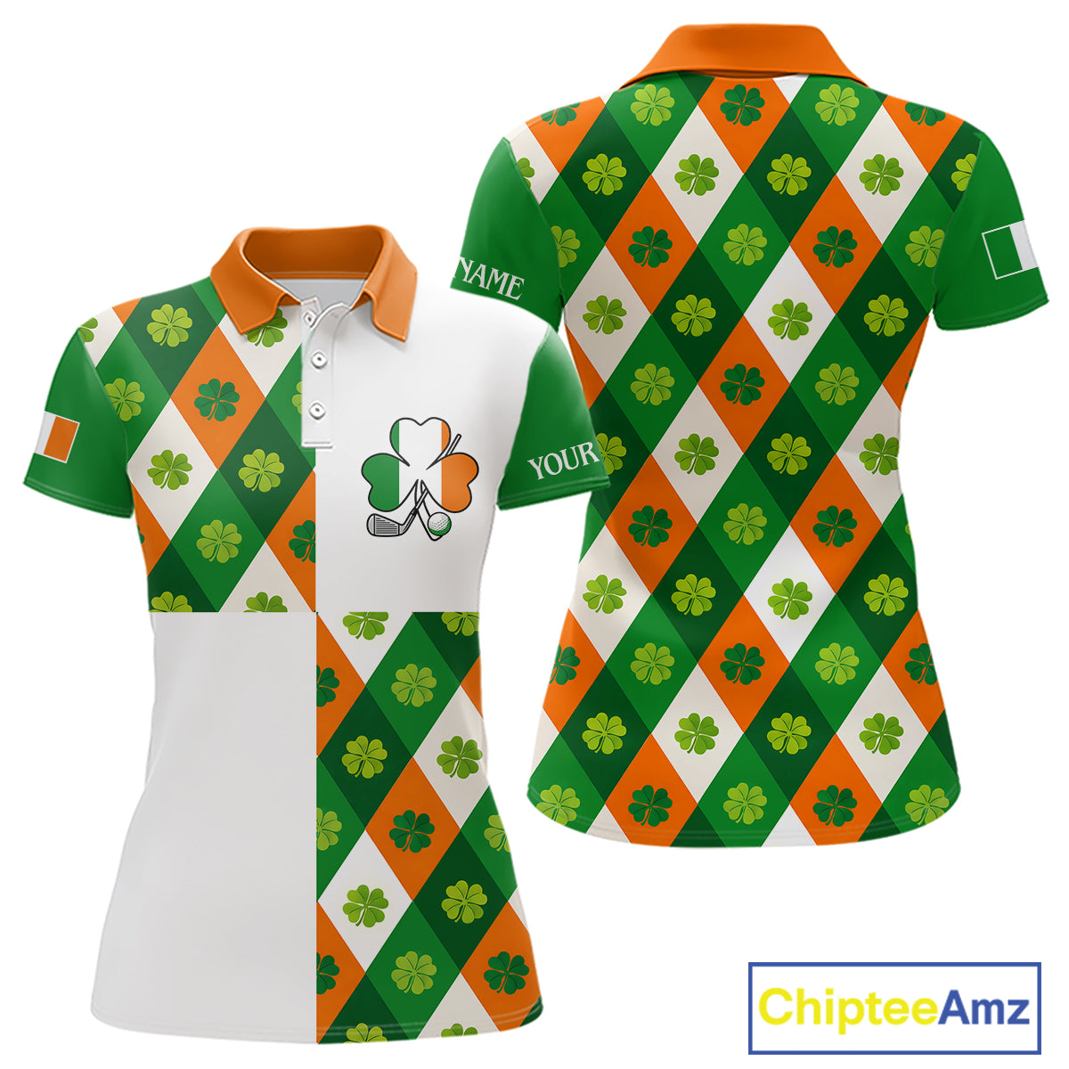 Argyle Womens Golf Polo Shirts Custom Ireland Flag St Patricks Day Green Clovers Plaid Golf Tops NHN0141