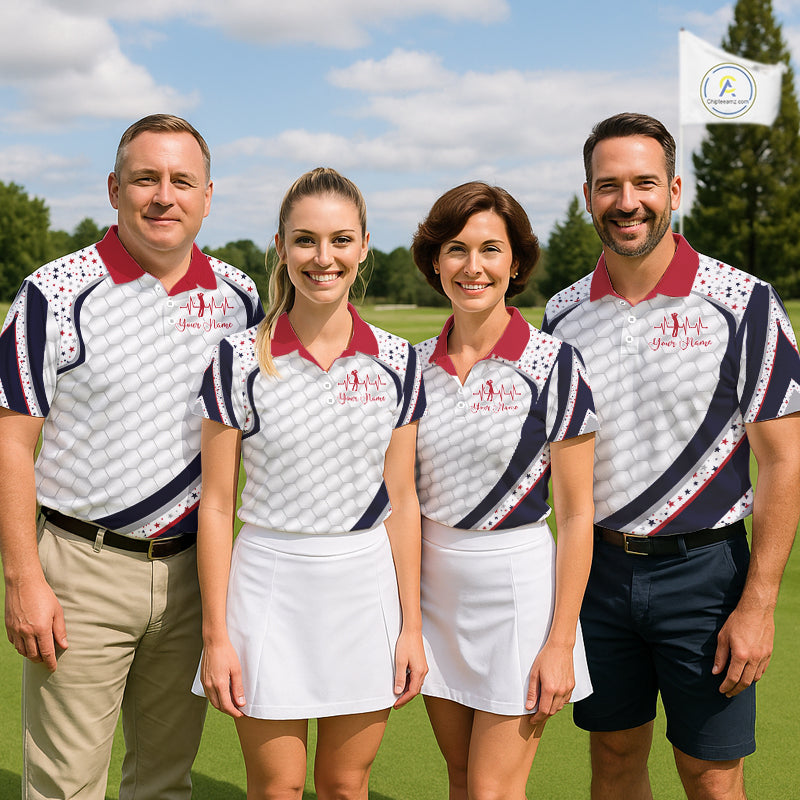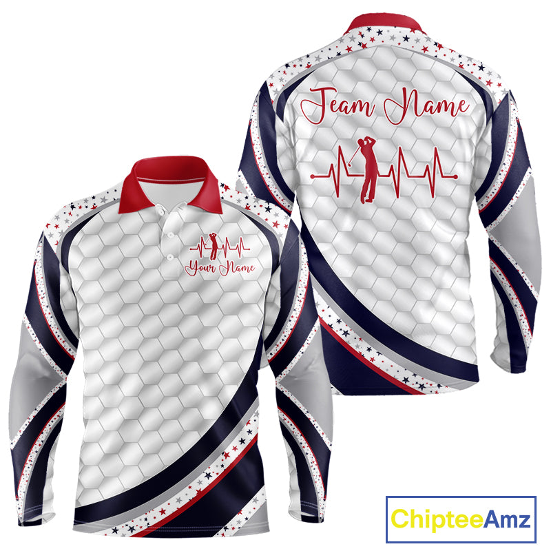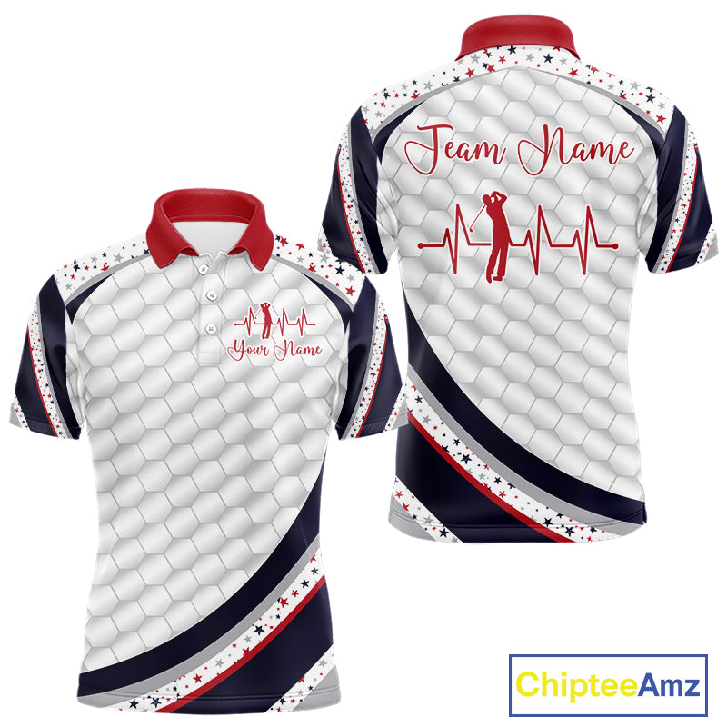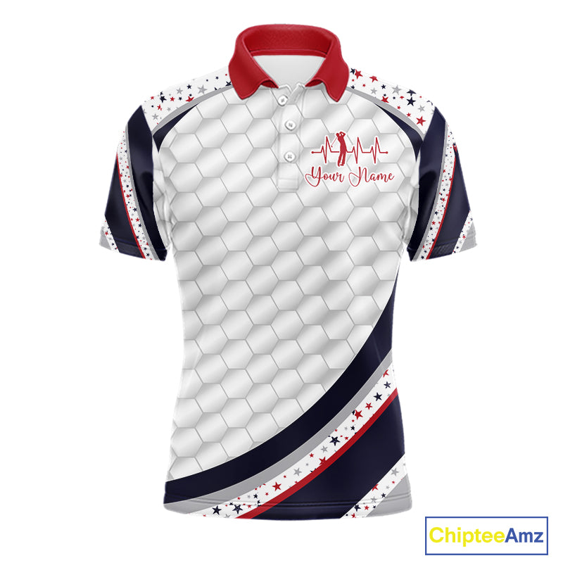 Red, White And Blue Star US Flag Golf Polos Shirts For Men Custom Patriotic Mens Golf Attire NYN2914