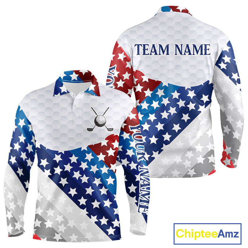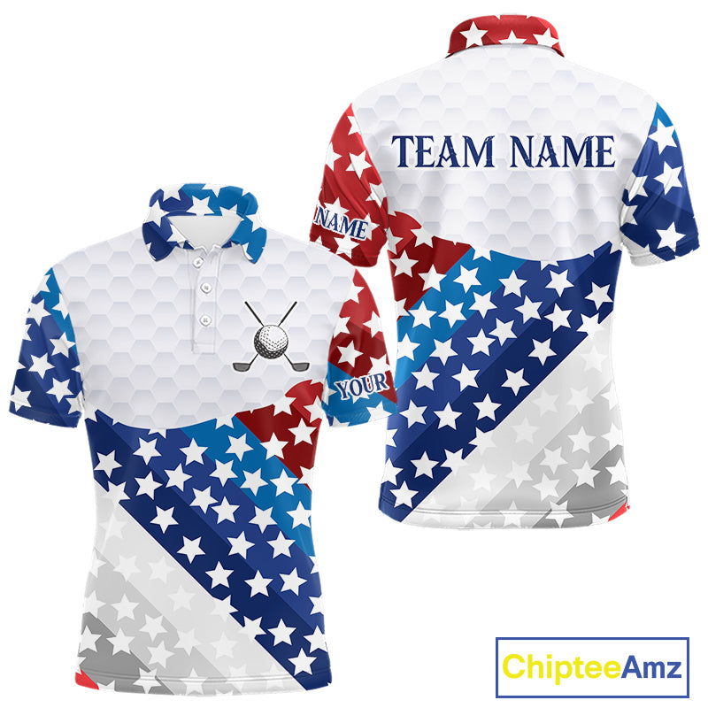 Mens Golf Polo Shirts Star Pattern Custom Patriotic Golf Team Shirts For Men, Golf Gifts NYN2915