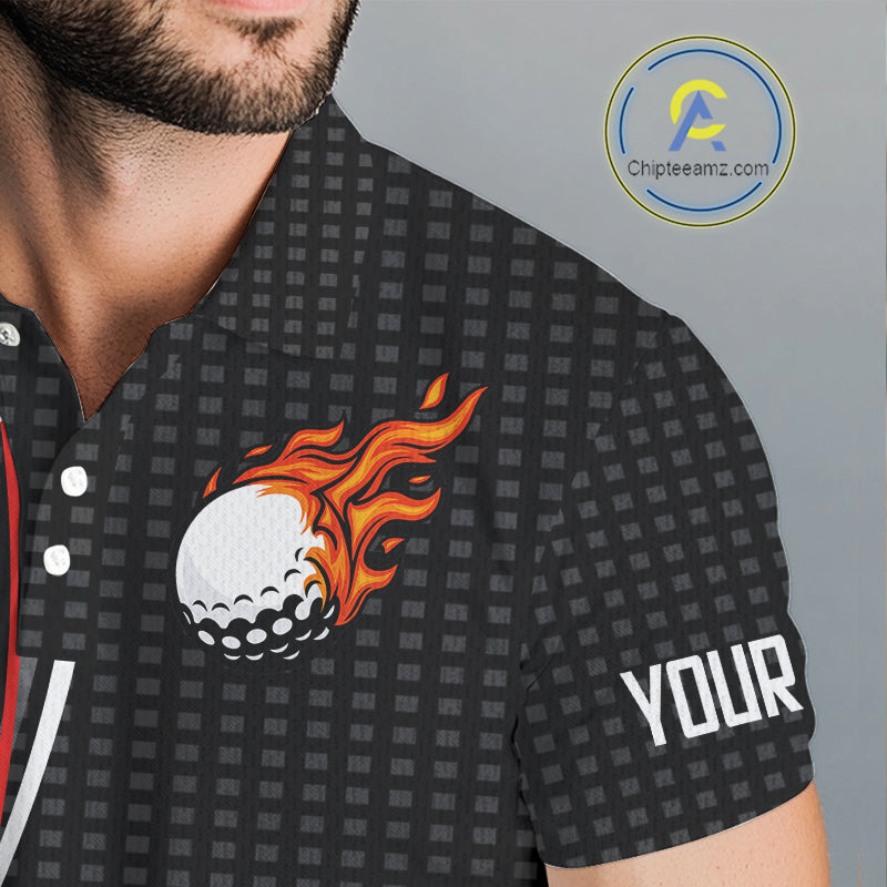 Mens Golf polo shirts flame golf ball sport Custom golf outfit for men, unique golf gifts | Black NQS10066