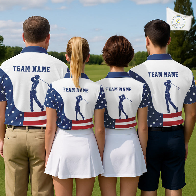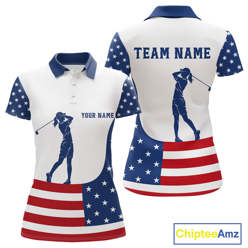Red, White and Blue American Flag Golf polo shirt for Women custom patriotic ladies golf outfit NQS11728