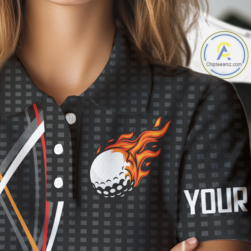 Women Golf polo shirts flame golf ball sport Custom golf outfit for ladies, unique golf gifts | Black NQS10066