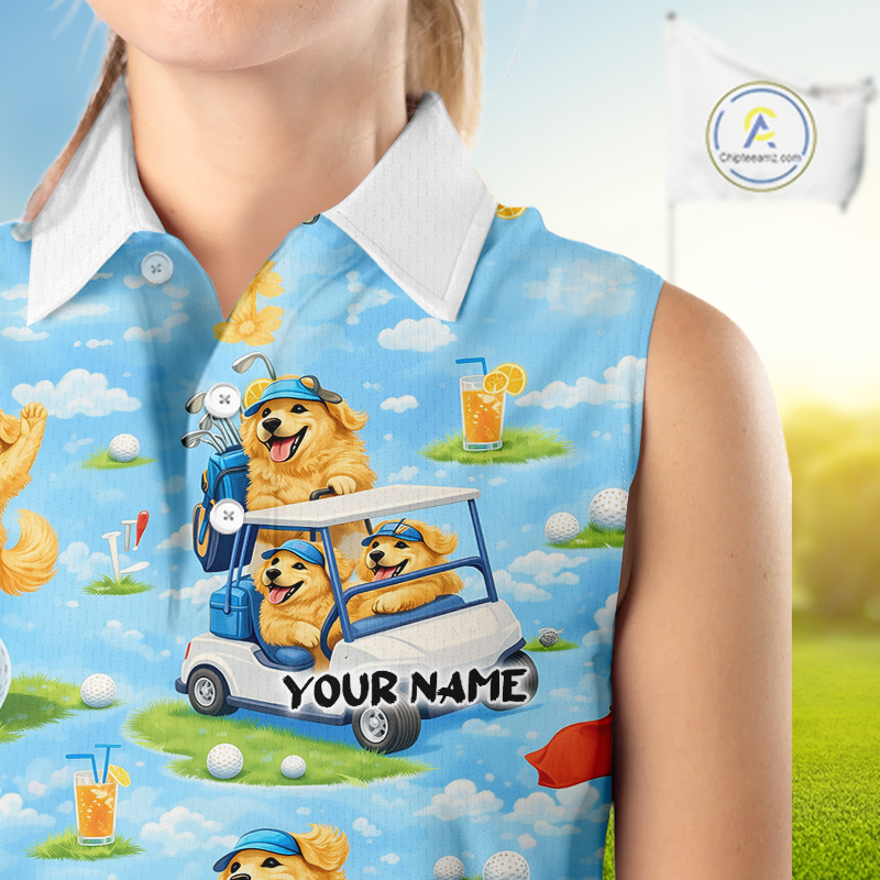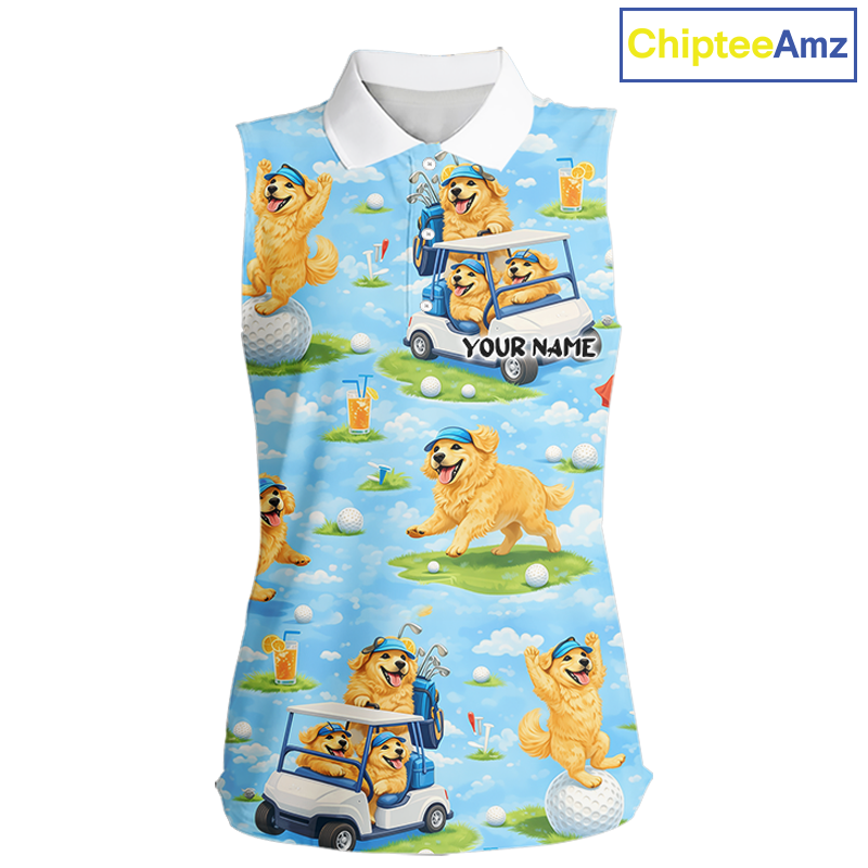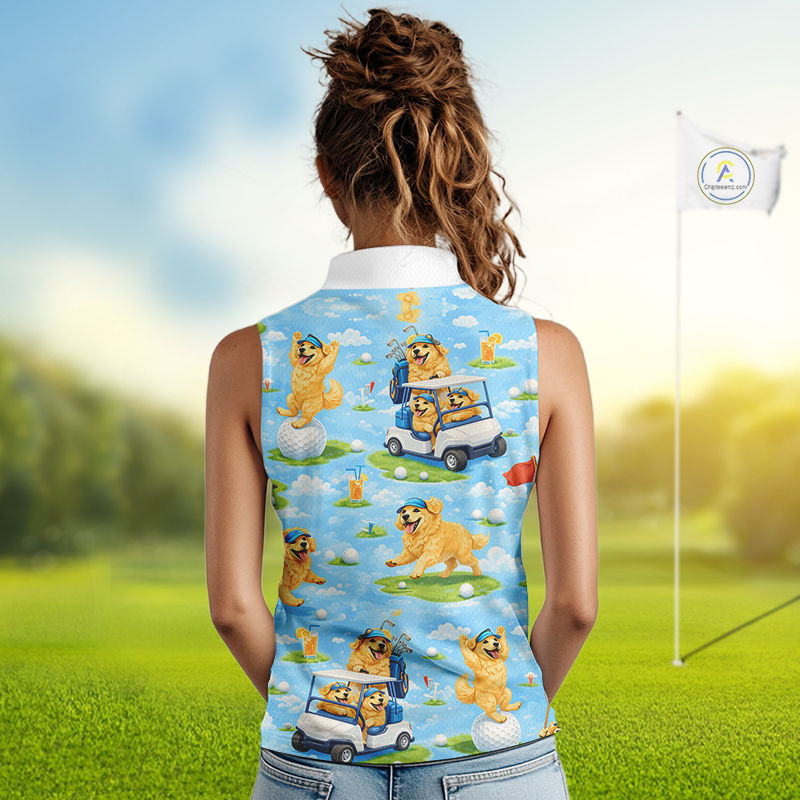 Womens Sleeveless Golf Polo Shirt Custom Funny Golden Retriever Blue Team Golf Tops, Dog Lover Gift NHN0225