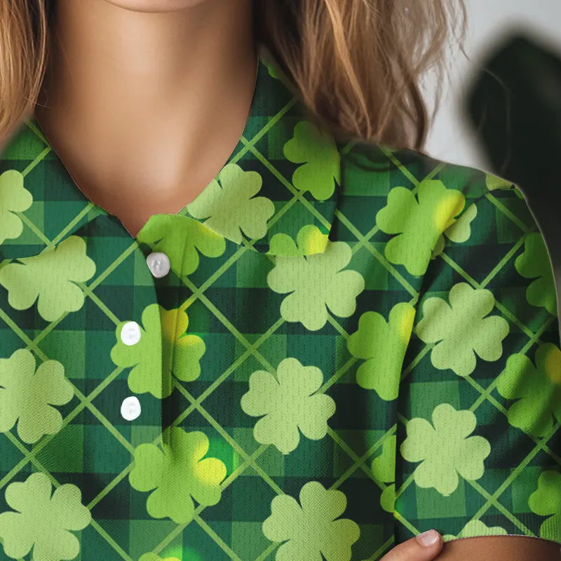 Personalized Green argyle shamrock pattern Women golf polo shirt Custom St Patrick day women golf tops NQS9546