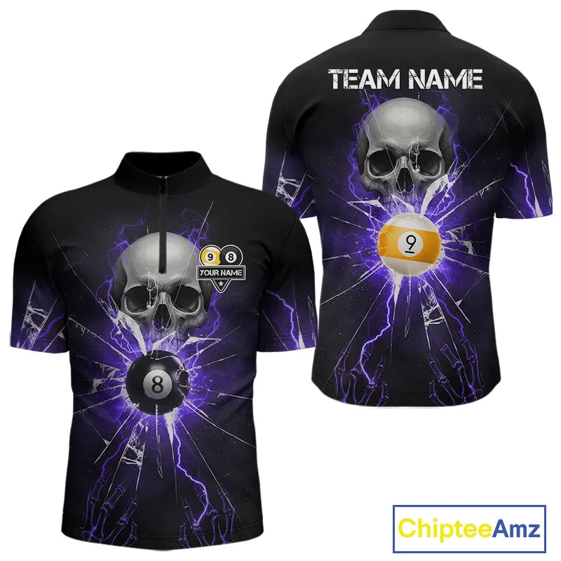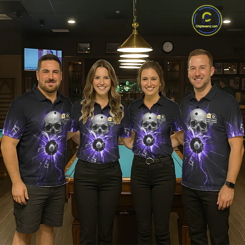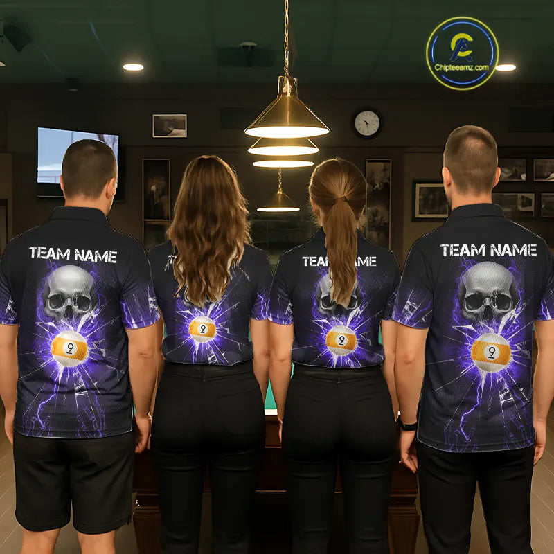 Purple Billiard 8 Ball & 9 Ball Skull Pool Shirt For Men Custom Glass Break Billiard Team Jersey TDM5514