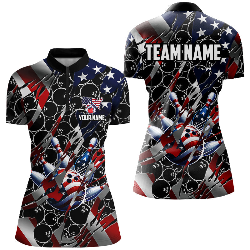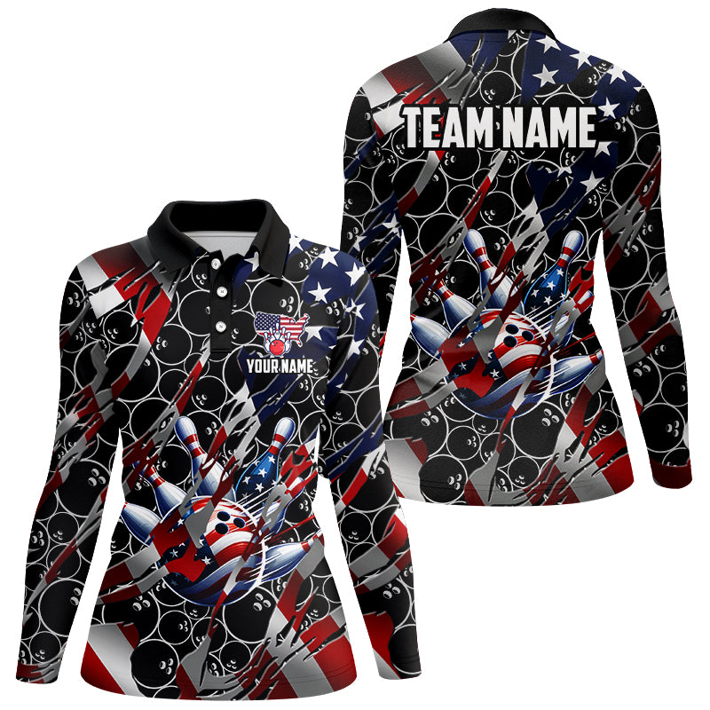 American flag black bowling camo Women bowling shirts Custom patriotic Bowling Team League Jerseys NQS8550