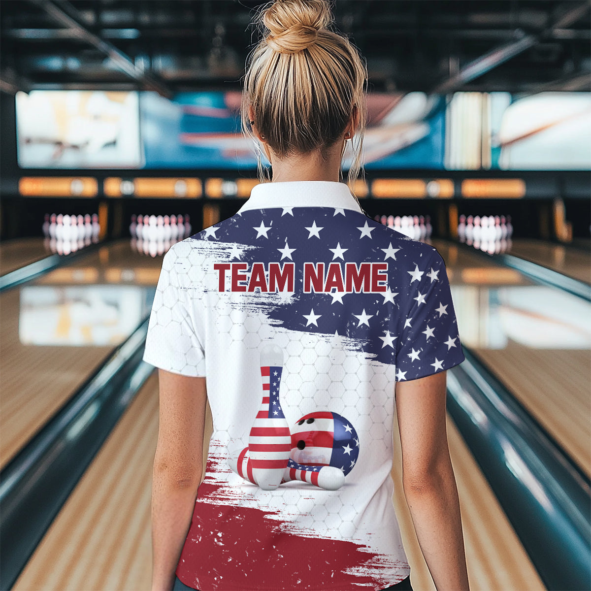 American Flag Bowling Quarter-Zip Shirt Custom Bowling Jersey for Women Bowling Team League QZT52