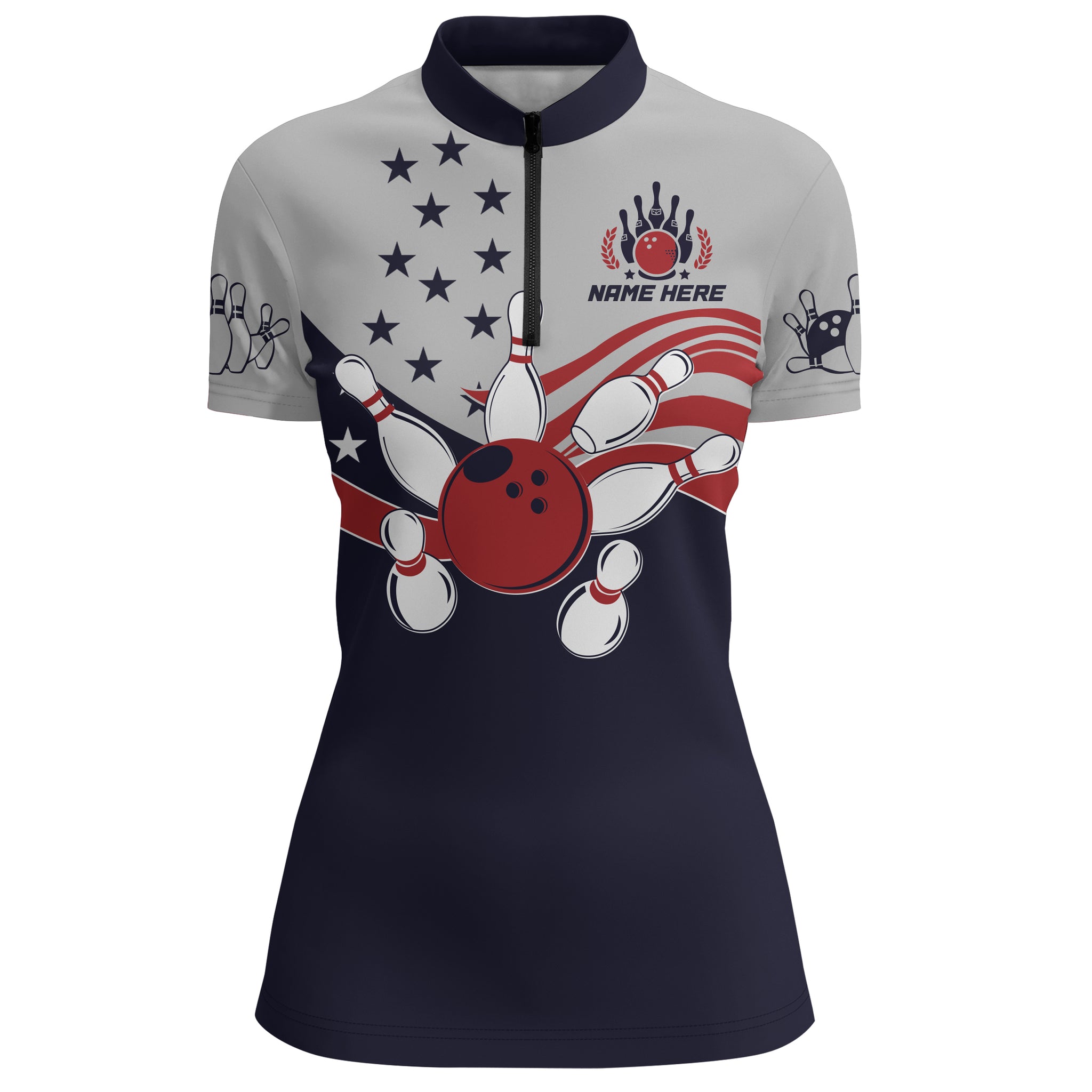 American Flag Bowling Quarter-Zip Shirt For Women Custom Bowling Team League Jersey For Ladies BDT187