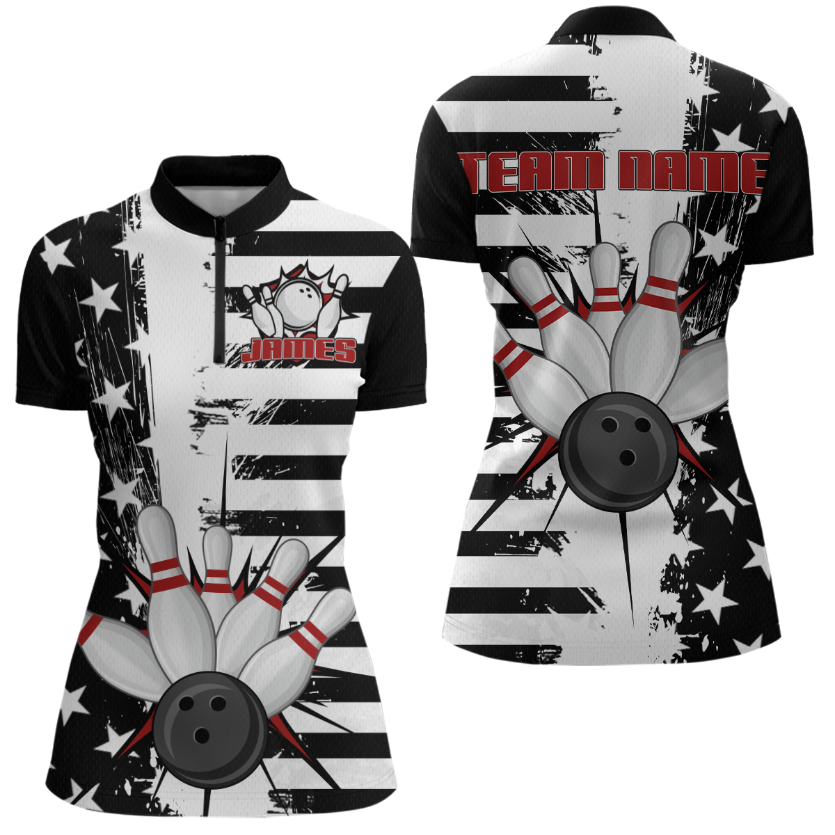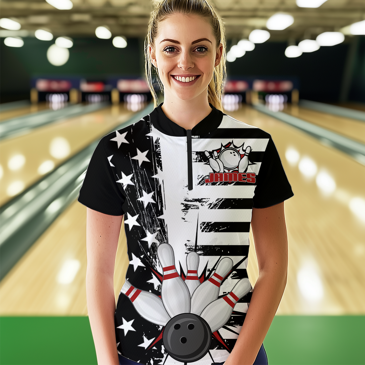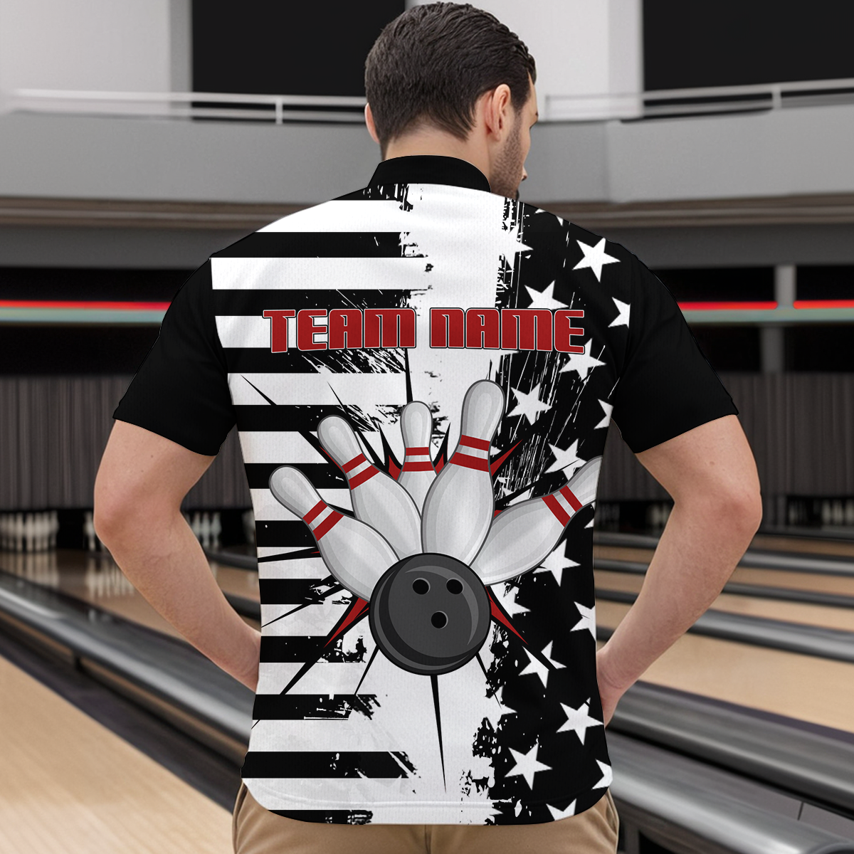 American Flag Bowling Shirt for Men Women Team Bowling Jersey Bowling Polo&1/4 Zip MBL18