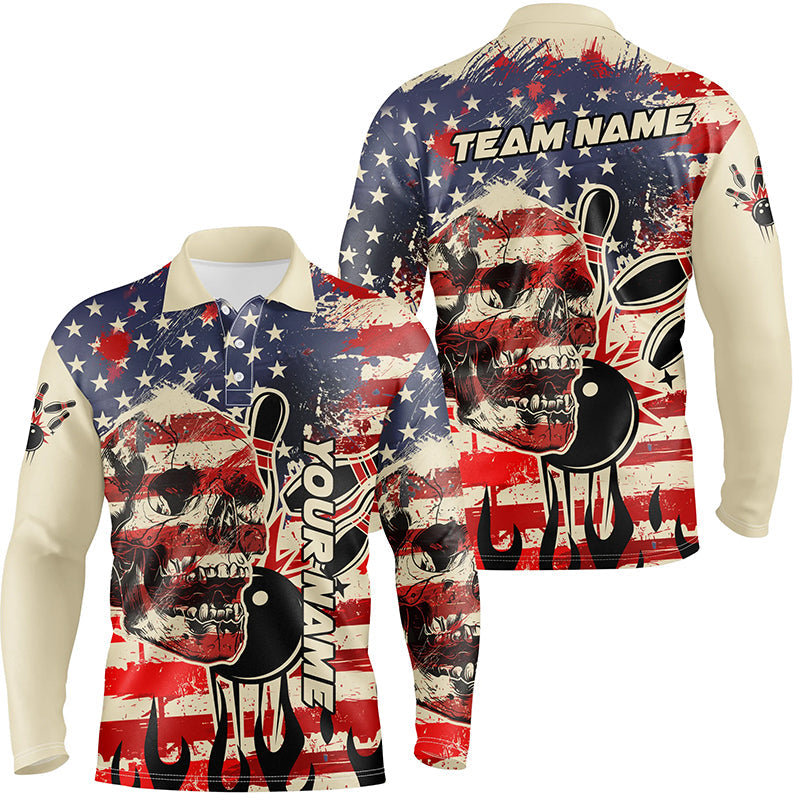 American flag skull Bowling polo shirt for men Custom Team bowling jerseys for men, gift for bowlers NQS7305