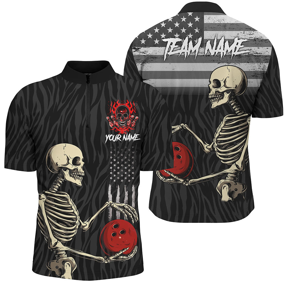 Black American Flag Skull Bowling Camo Custom Bowling Shirts For Men Bowling Team League Jerseys NQS8419