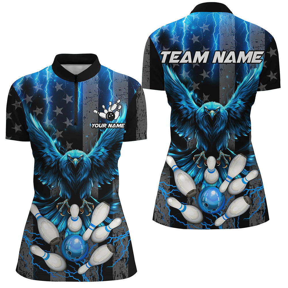 Black American flag Women bowling shirts Custom blue lightning thunder Eagle Bowling Team Jerseys NQS8540