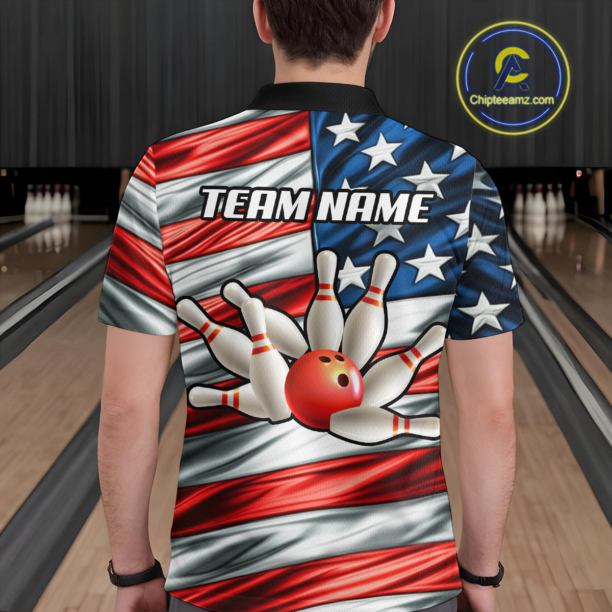 Custom American Flag Bowling Men Shirts Bowling Uniform Polo & 1/4 Zip Bowling Team Jerseys HNT97