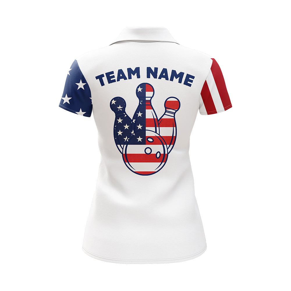 Custom Bowling Polo Shirt Women American Flag Bowling Team Jersey Patriotic Bowling League Shirt BDT123