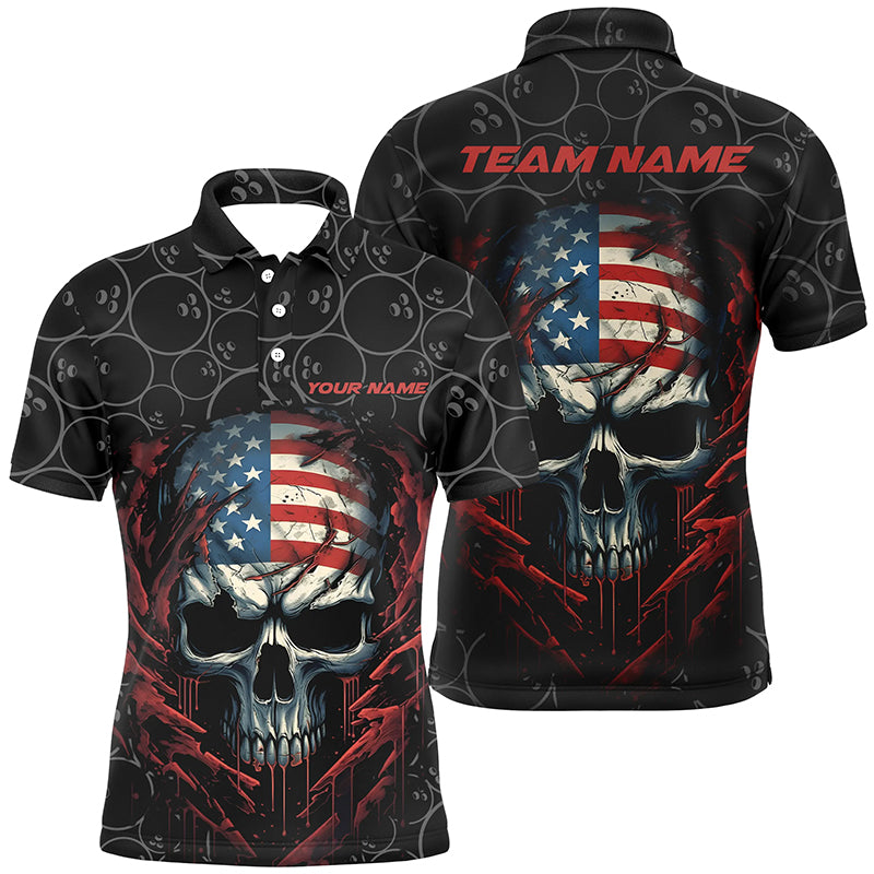 Custom American Flag Skull Bowling Shirts For Men, Patriotic Team Bowling Jerseys IPHW5160