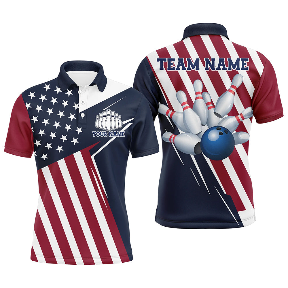 Custom Patriotic Bowling Shirts For Men, US Bowling Team Shirts American Flag Shirt IPHW7394