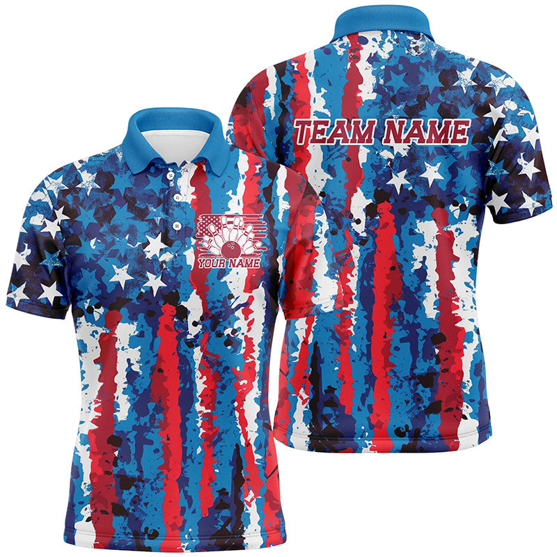 Watercolor Splatters American Flag Custom Patriotic Bowling Shirts For Men, US Bowling Shirt IPHW7712
