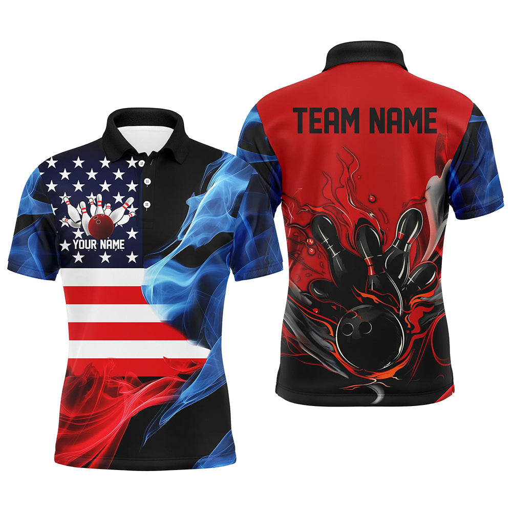 Red White And Blue American Flag Custom US Bowling Shirts For Men, Patriotic Bowling Team Shirt IPHW7727
