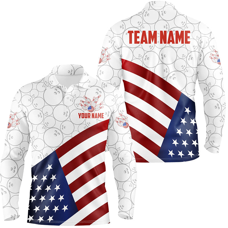 Personalized American Flag Bowling Team Shirts For Men Patriotic Bowling Gifts NQS8947