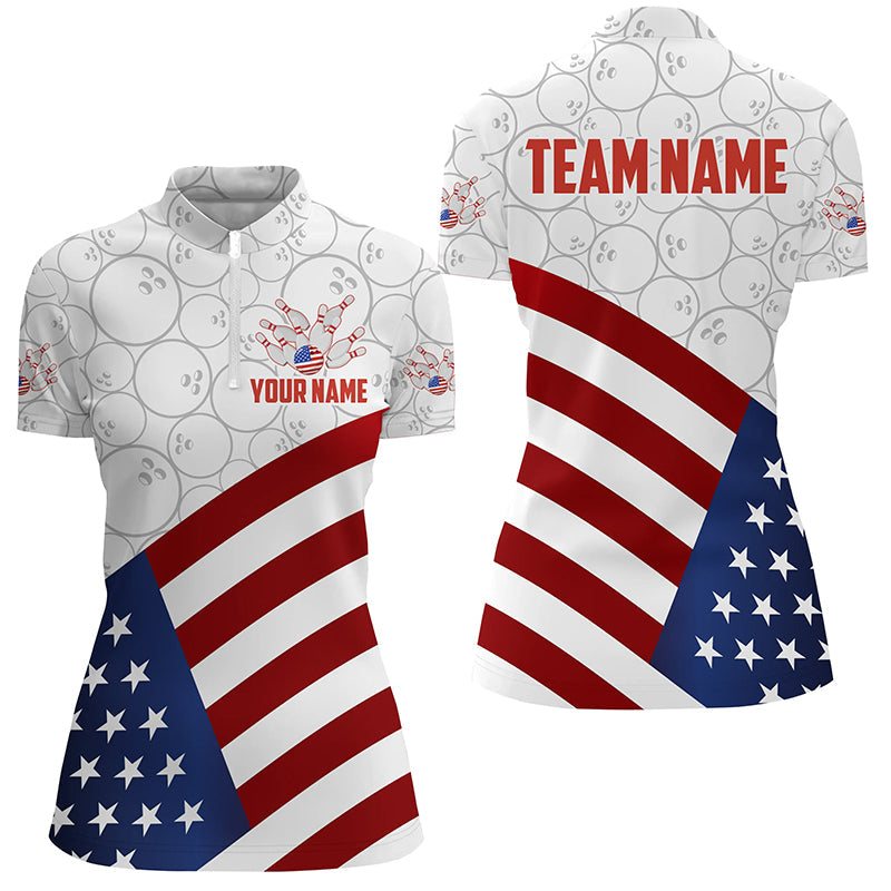Personalized American Flag Bowling Team Shirts For Women Patriotic Bowling Gifts NQS8947