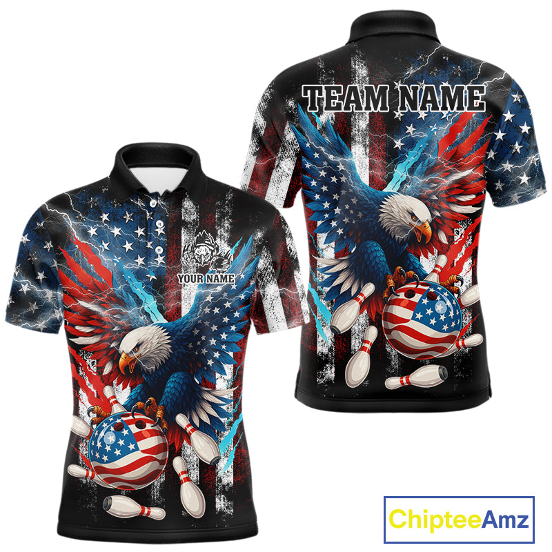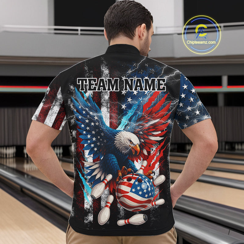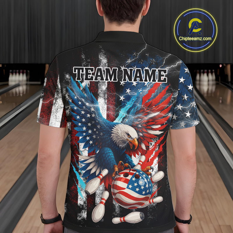 Personalized American Flag Eagle Lightning Thunder Bowling Team Shirt For Men, Patriotic Bowling Gift NQS10834