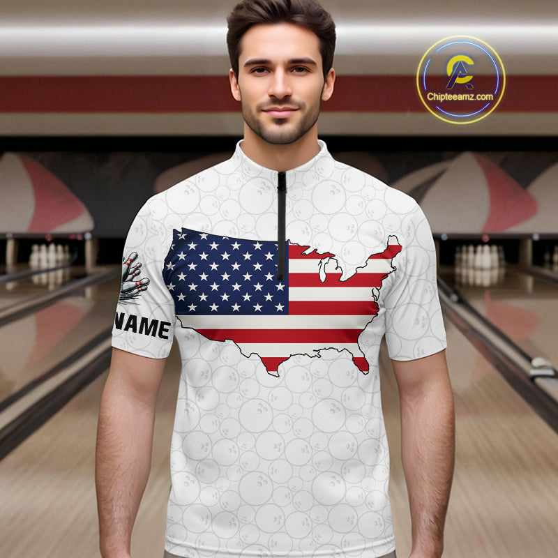 Personalized American Flag White Bowling Shirts For Men Custom patriotic Team Bowling jerseys NQS10184