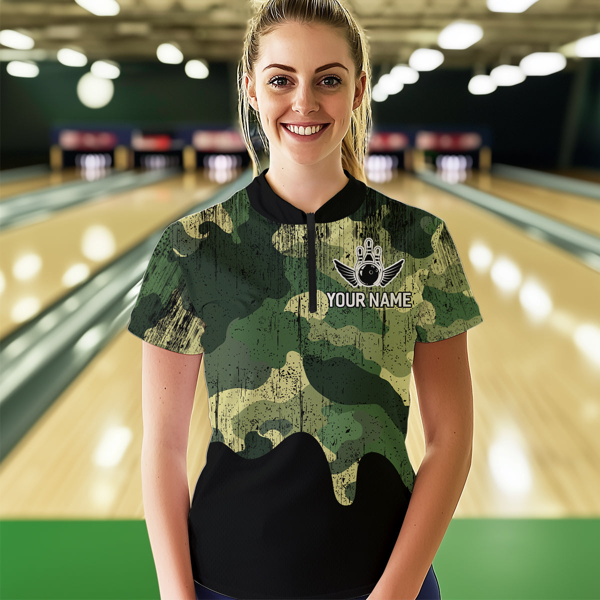 Personalized Camouflage Bowling Shirt American Flag Quarter-Zip Bowling Team Jersey QZT678