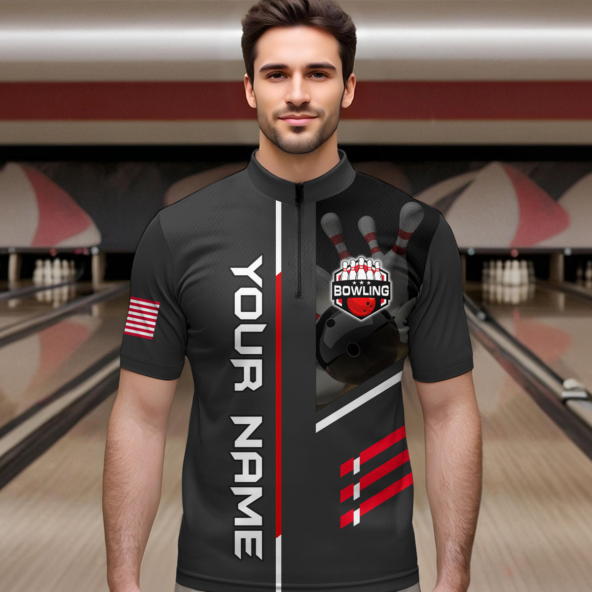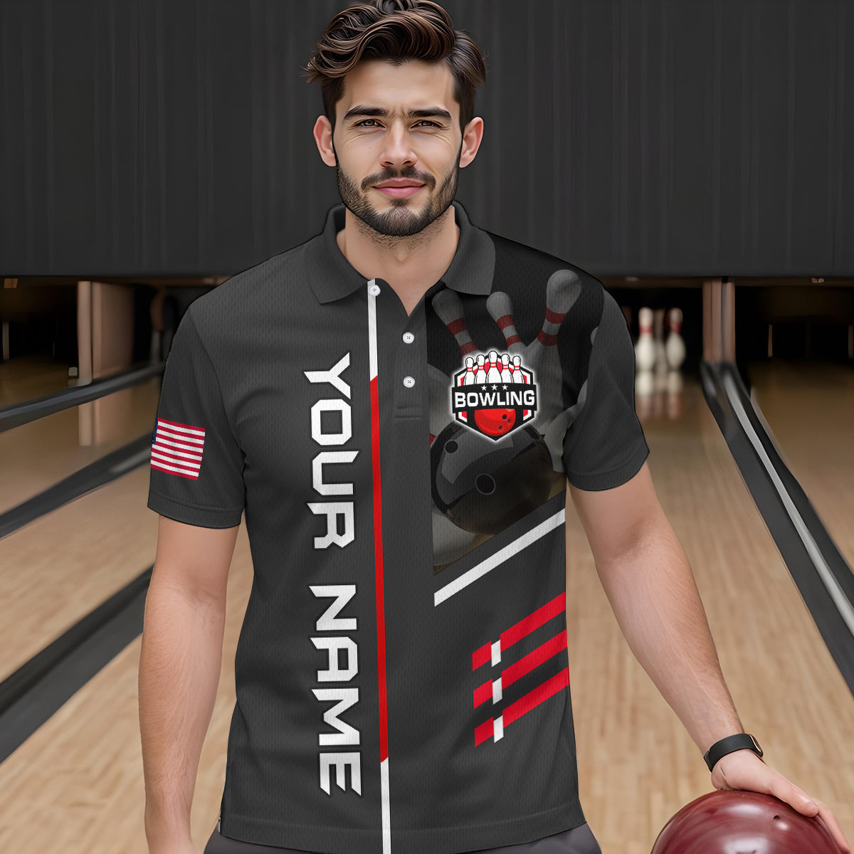 Personalized US Flag Eagle Bowling Shirt Bowling Jersey for Men Polo & 1/4 Zip Shirt Team League HNT24