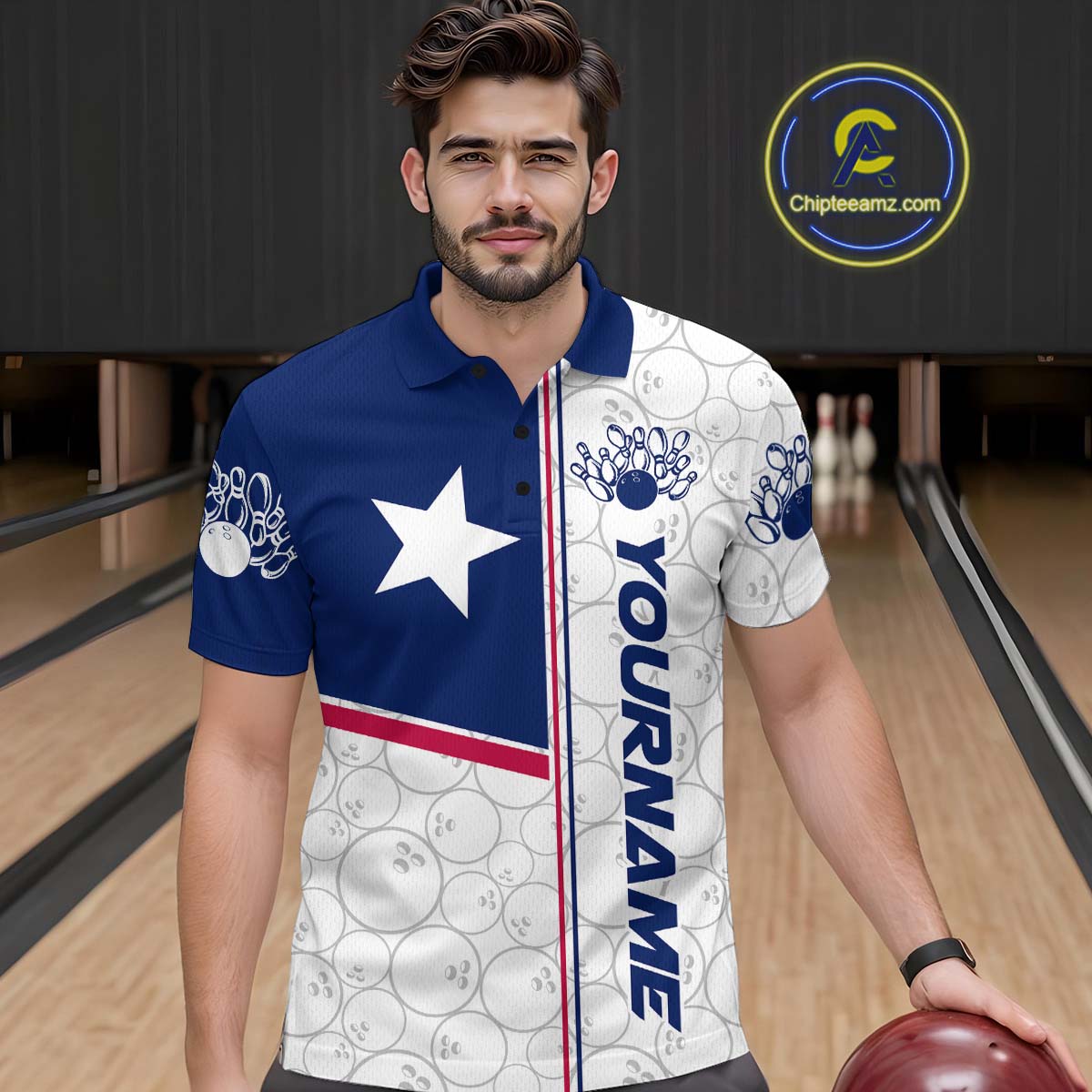 Custom Texas Flag Bowling Team Men Polo Shirts, Texas Bowling League Shirt Team Uniform IPHW9631