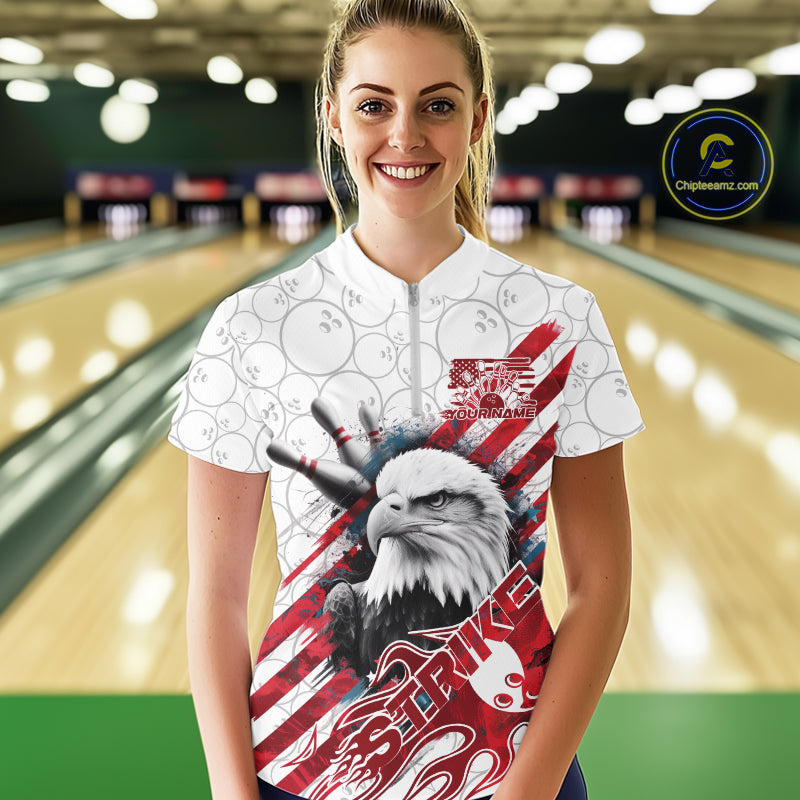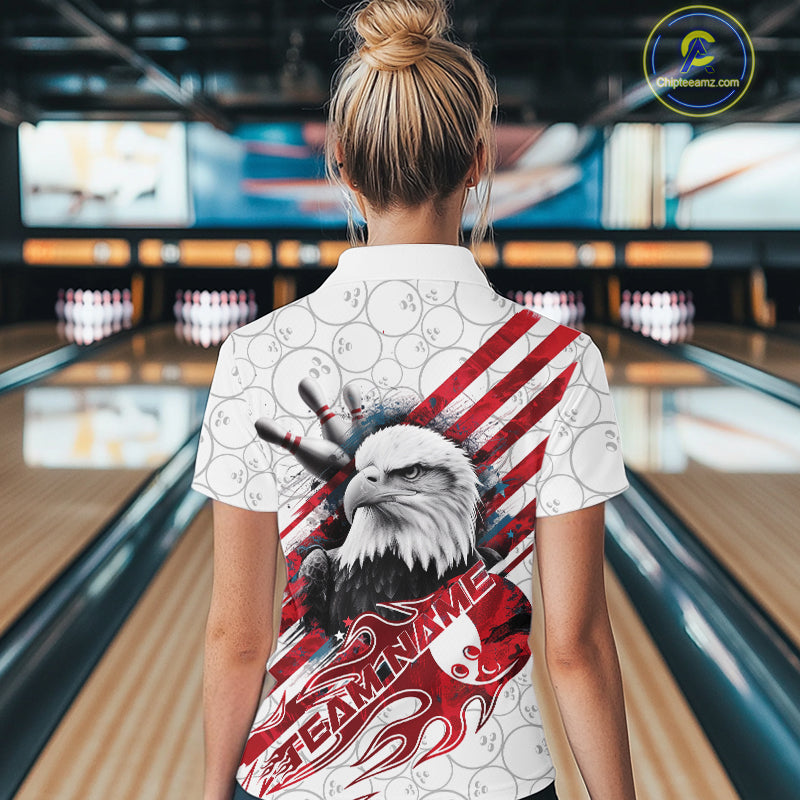 Custom Patriotic Eagle Bowling Shirts For Women, US Flag Bowling League Team Shirt IPHW9475