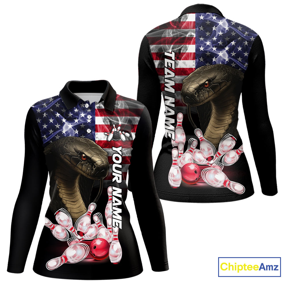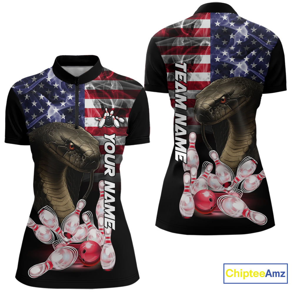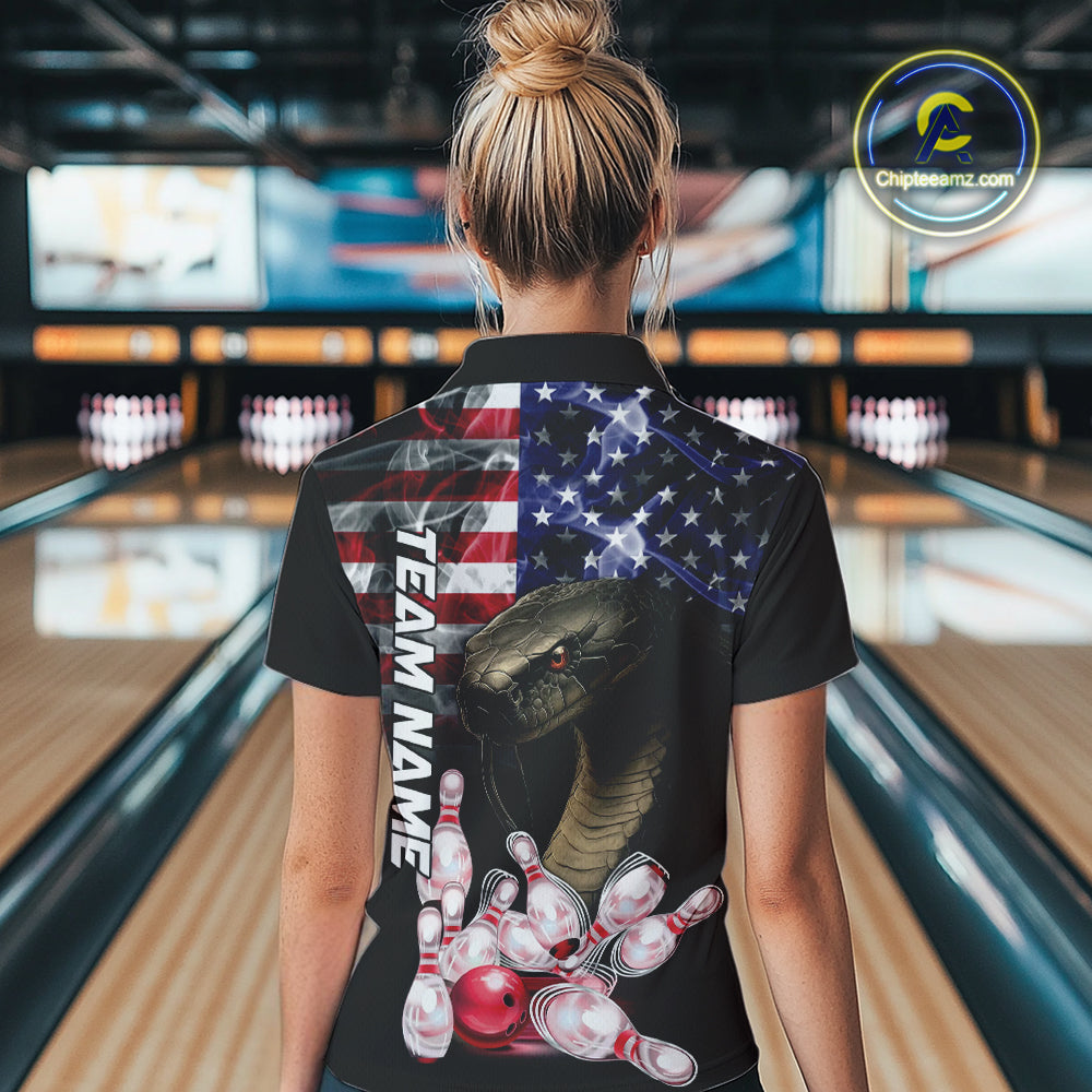 Smoke American Flag Cobra Snake Bowling Shirts For Women Custom patriotic Team Bowling jerseys NQS10286