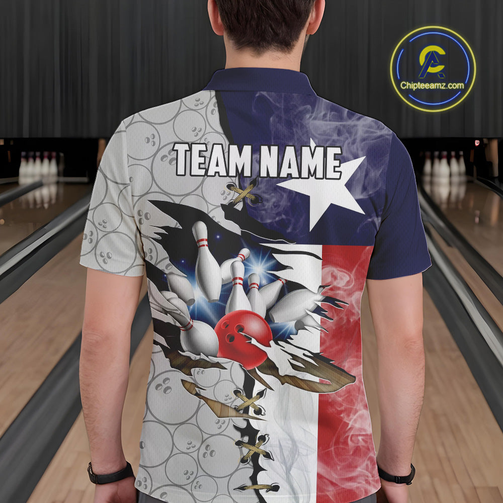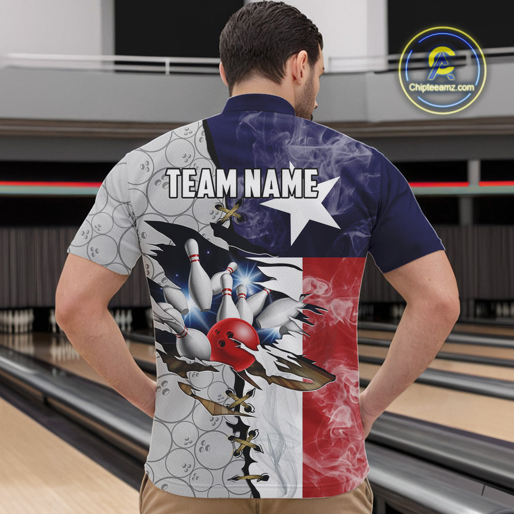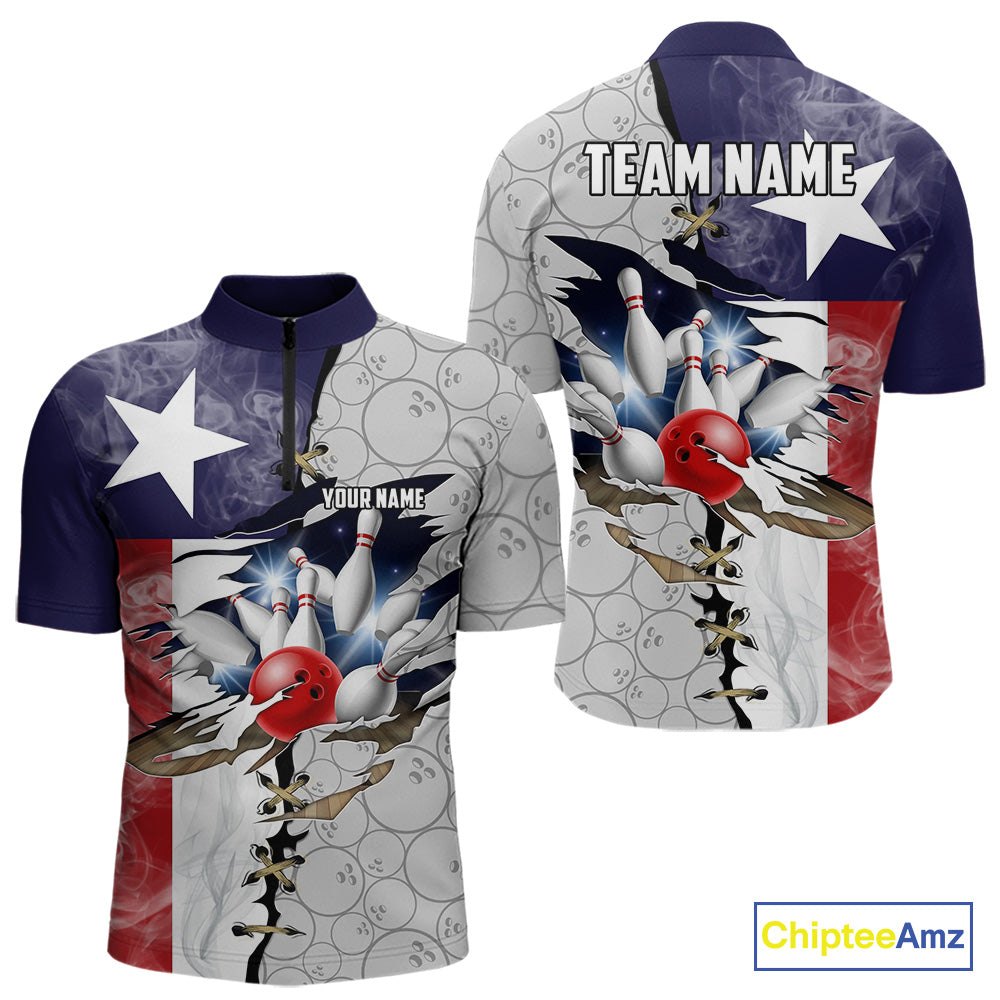 Smoke Texas Flag Gray Camo Bowling Polo, 1/4 Zip shirt for men Custom patriotic Team bowling jersey NQS10532