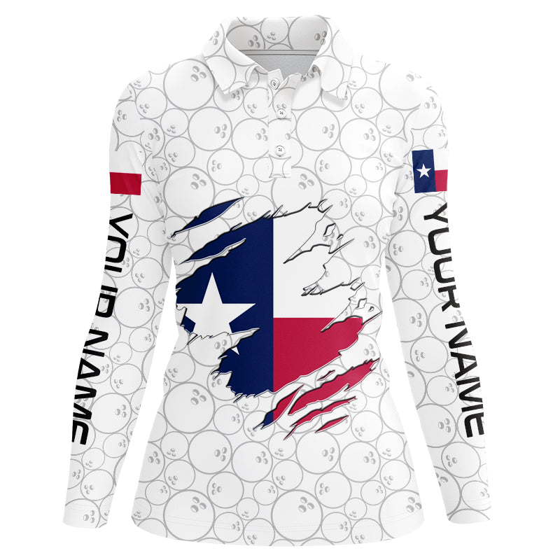 White Bowling Ball Camo Texas flag Bowling shirts for Women custom Team ladies bowling League jerseys NQS8740