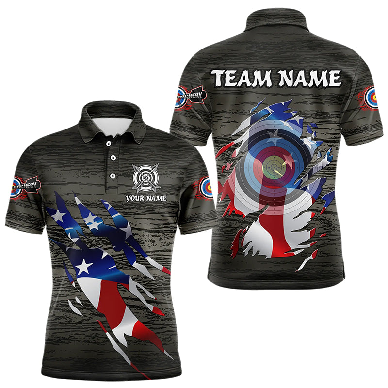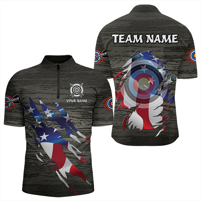 Personalized Grey Grunge USA Flag Archery Shirts For Men, American Patriotic Archery Team Jerseys TDM3243