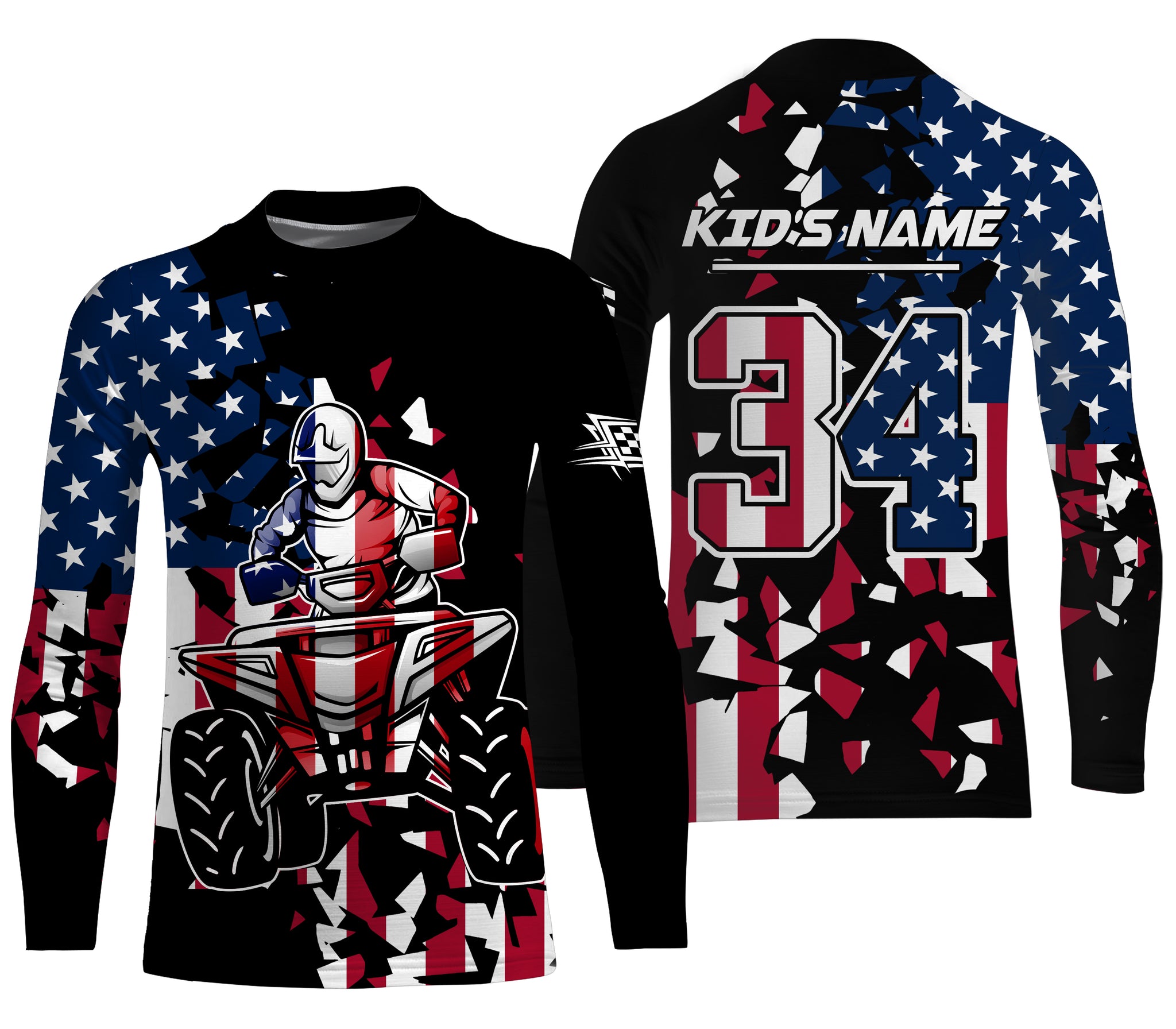 ATV Motocross Jersey Adult&Kid Personalized UPF30+ American Flag Quad Bike Shirt Off-Road ATV MX PDT726