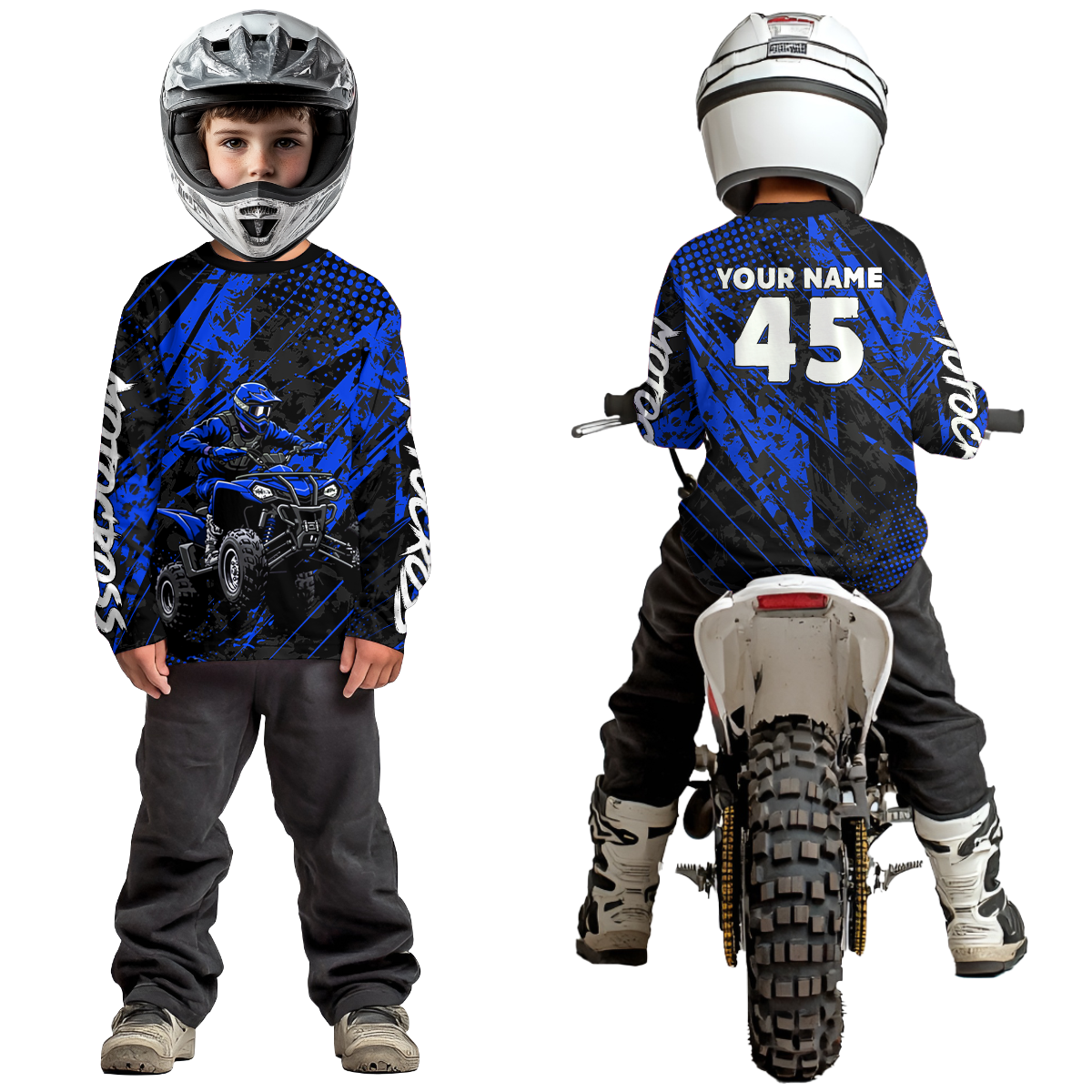 Custom Blue ATV Motocross Shirts Kid Men Women Off-Road Quad Bike Shirt UPF30+ DNT61