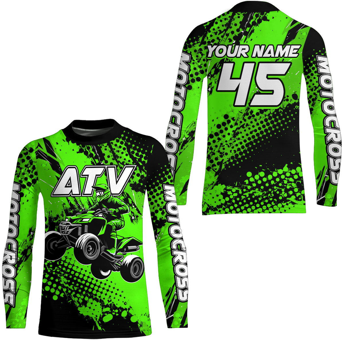 Custom Green ATV Motocross Racing Jersey Kid Adult Quad Bike Jersey Off-Road Shirt UPF30+ ATV Shirt DNT12