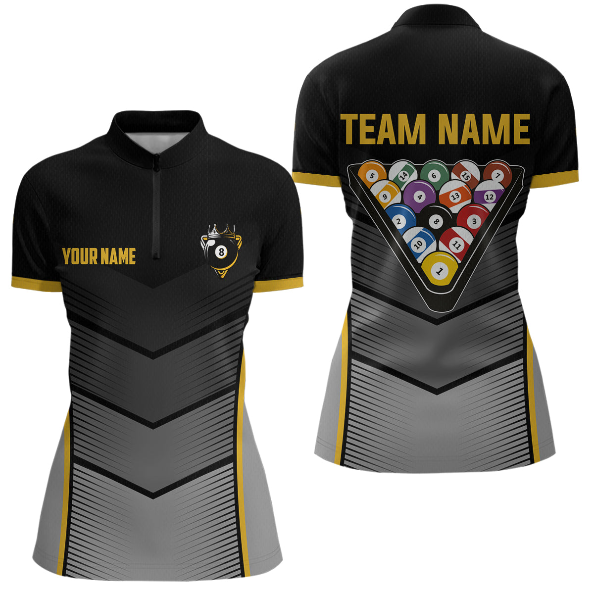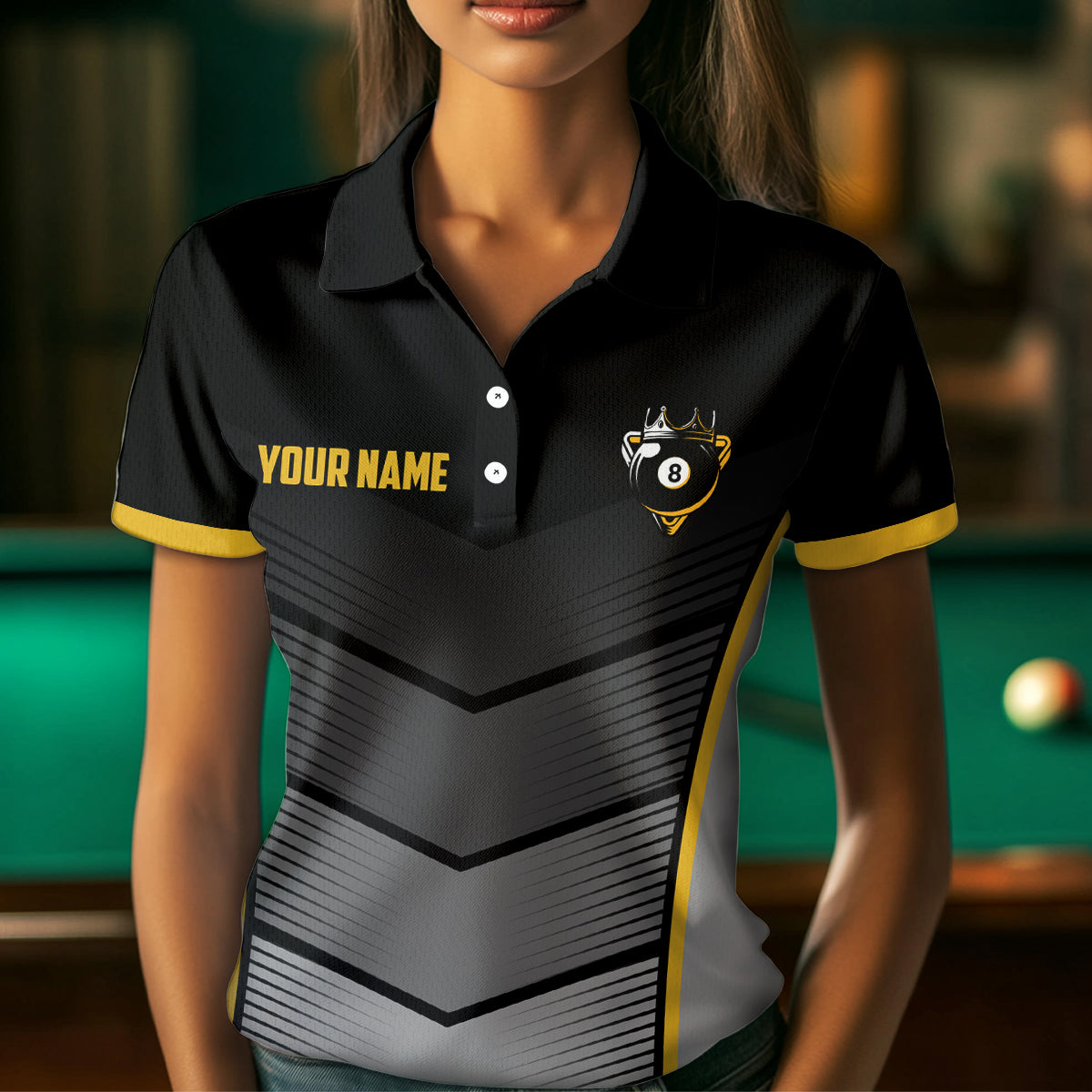 Billiard Shirt Crown 8 Ball Billiard Jersey Women Performance Billiard Shirt for Women Team Polo & 1/4 Zip NNT30
