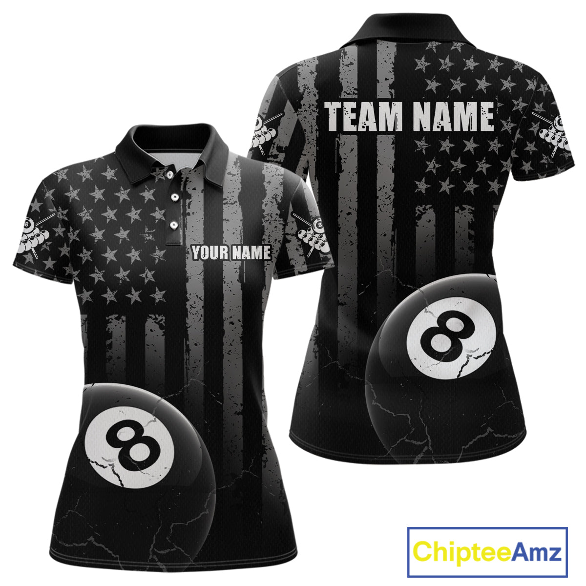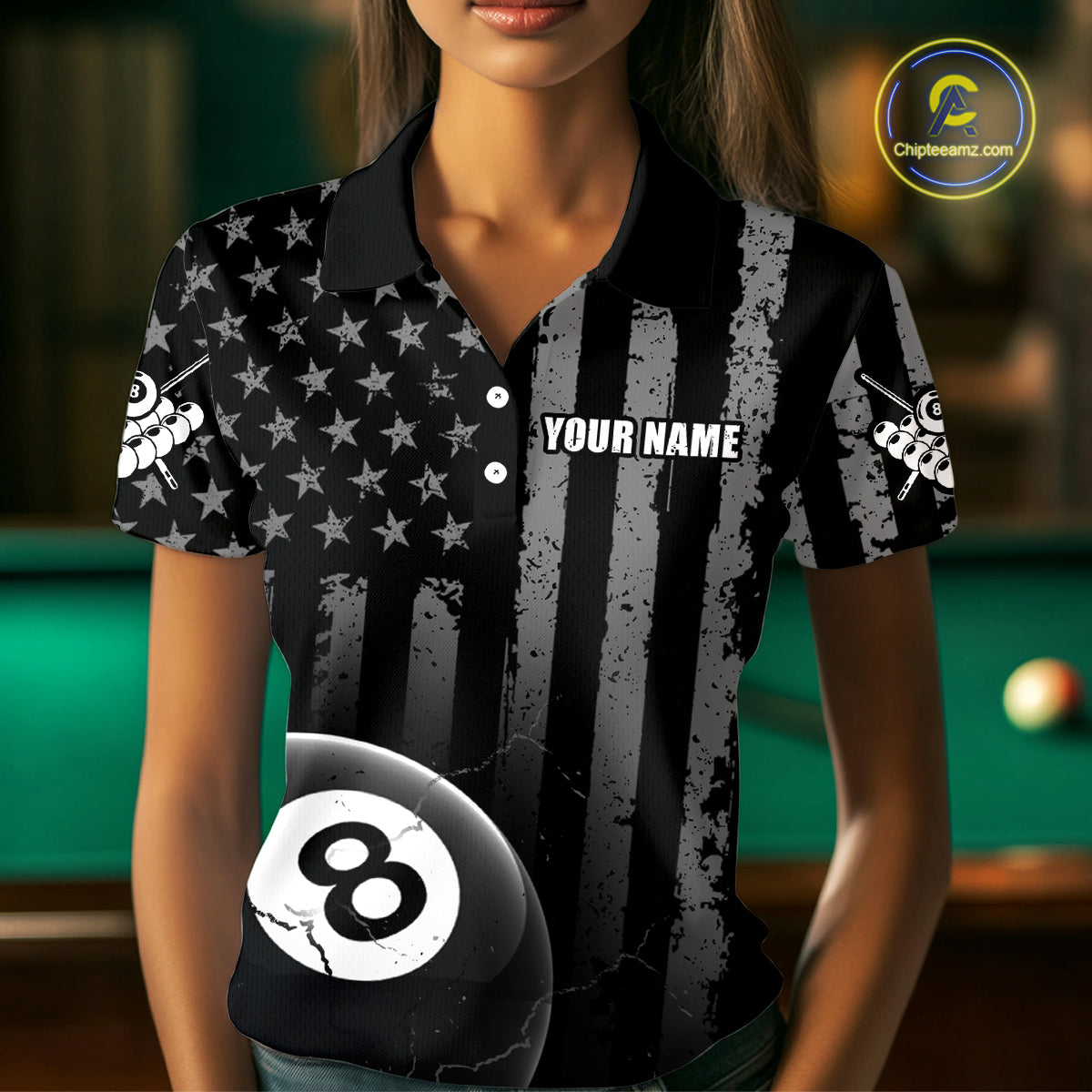 Custom American Flag 8 Ball Billiard Shirts for Women, Billiard Team Polo & 1/4 Zip Shirts NNT64