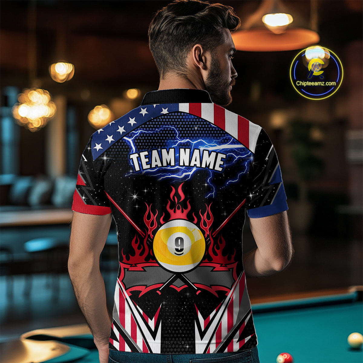 9 Ball Pool Billiard Jerseys Custom Lightning American Flag Men Billiard Shirts, 9 Ball Team Shirts TDM2867