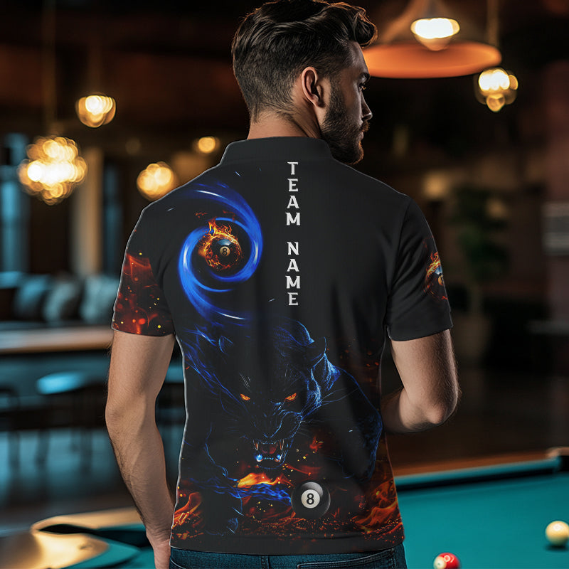Personalized Orange And Blue Flaming 3D Panther Billiard Shirts For Men, Cool Team Billiard Jerseys TDM3599