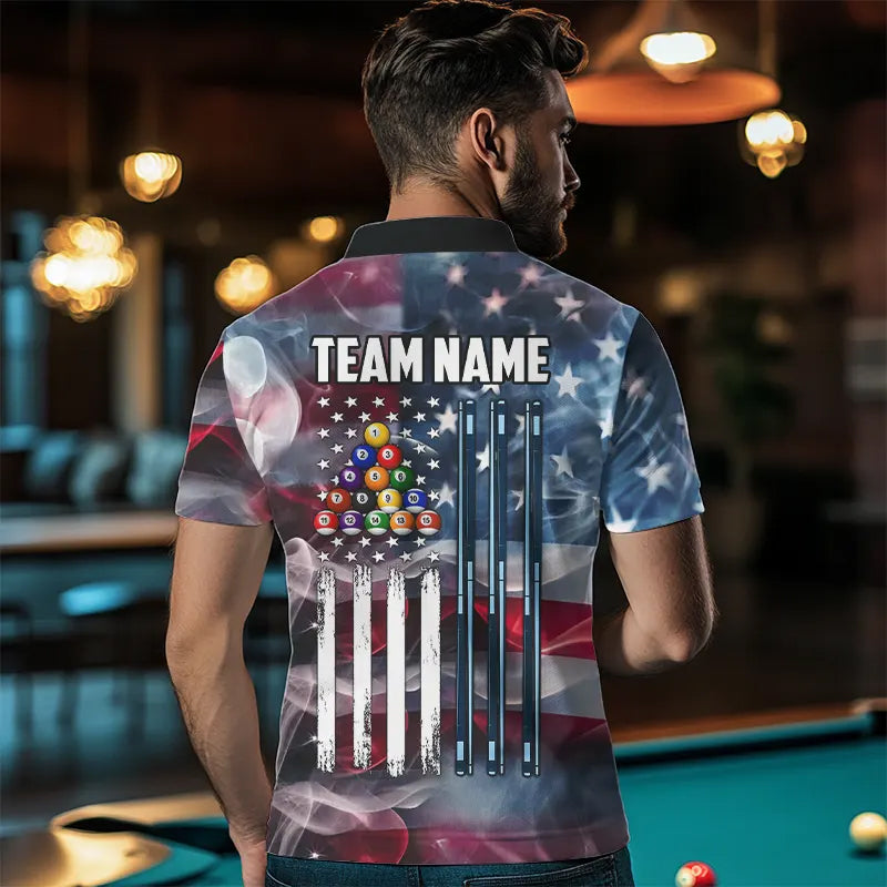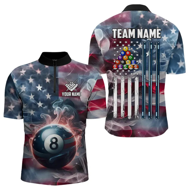 Personalized Smoke USA 8 Ball Pool Billiard Shirts For Men, Patriotic American Team Billiard Jersey TDM3602