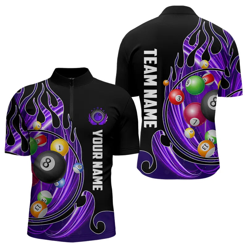 3D Billiard Balls Fire Flame Custom Pool Shirts For Men, Billiard League Team Jerseys | Purple TDM3753