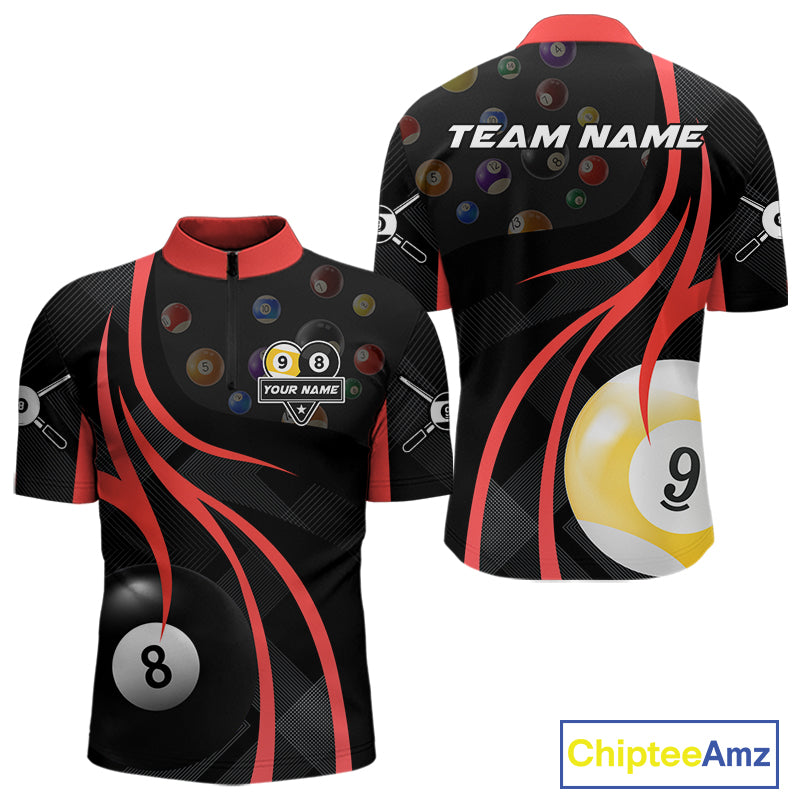 Personalized Billiard 8 Ball & 9 Ball Pool Shirt For Men, Billiard Jersey Team Polo & 1/4 Zip|Red TDM4457