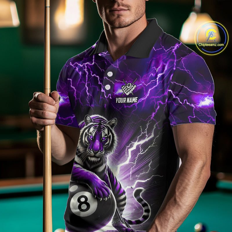 Lightning Thunder Tiger Custom Purple 8 Ball Pool Shirts For Men, Billiard Team League Jerseys TDM4815