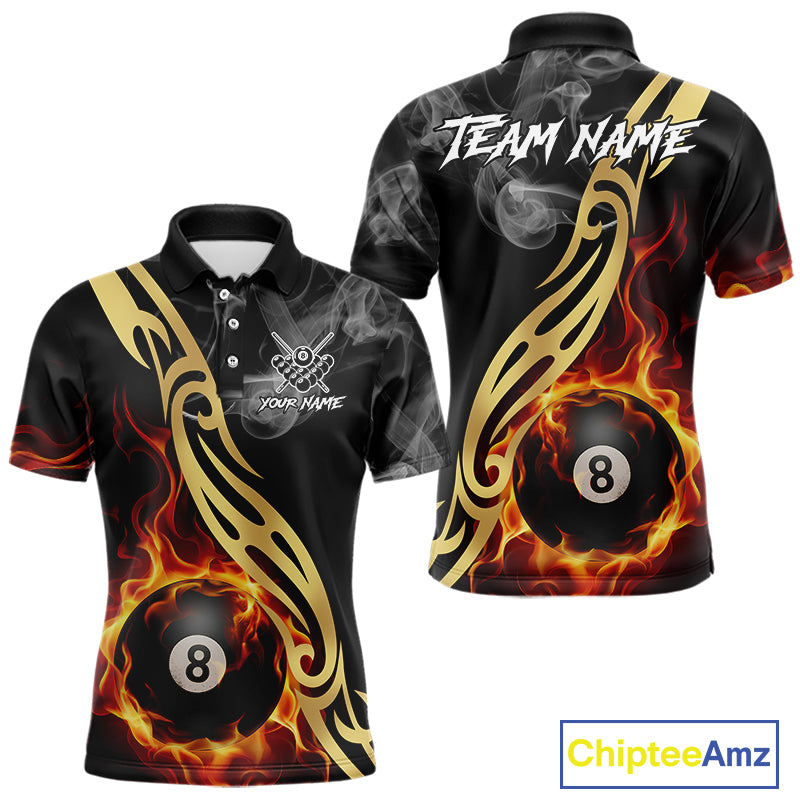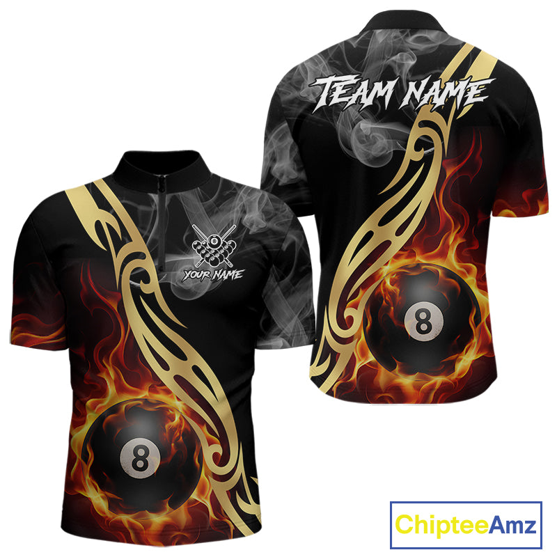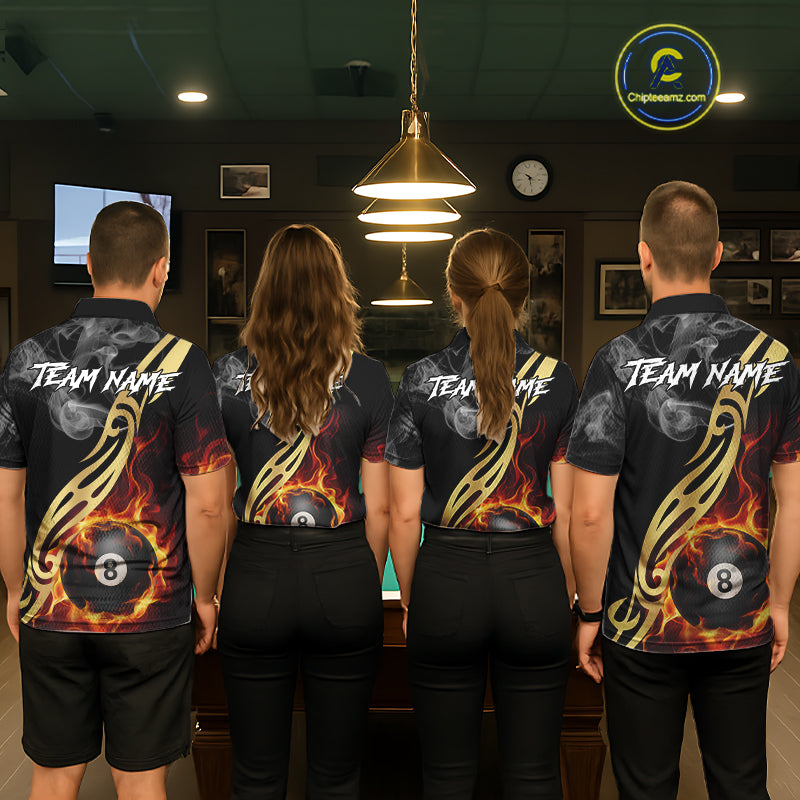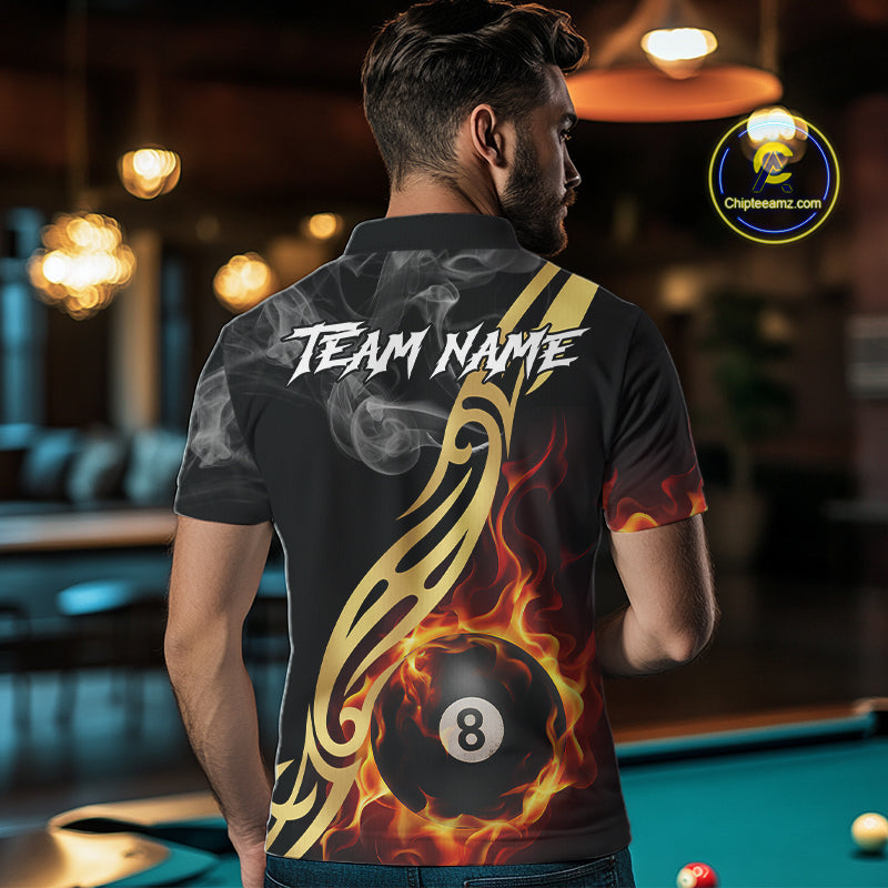 8 Ball Pool Fire Flame Smoke Tribal Billiard Shirt For Men Custom Billiard Team Jersey |Black TDM5399