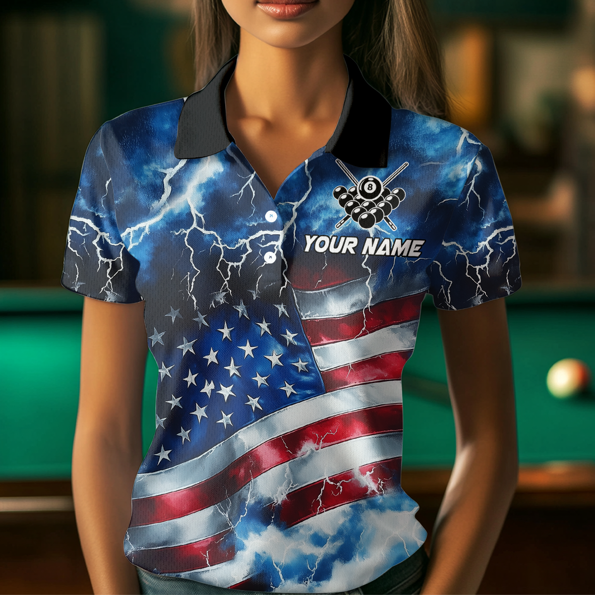 US Flag Thunder Billiards Shirt Women Polo & 1/4 Zip Shirts Billiard Team Jersey for Team NNT11