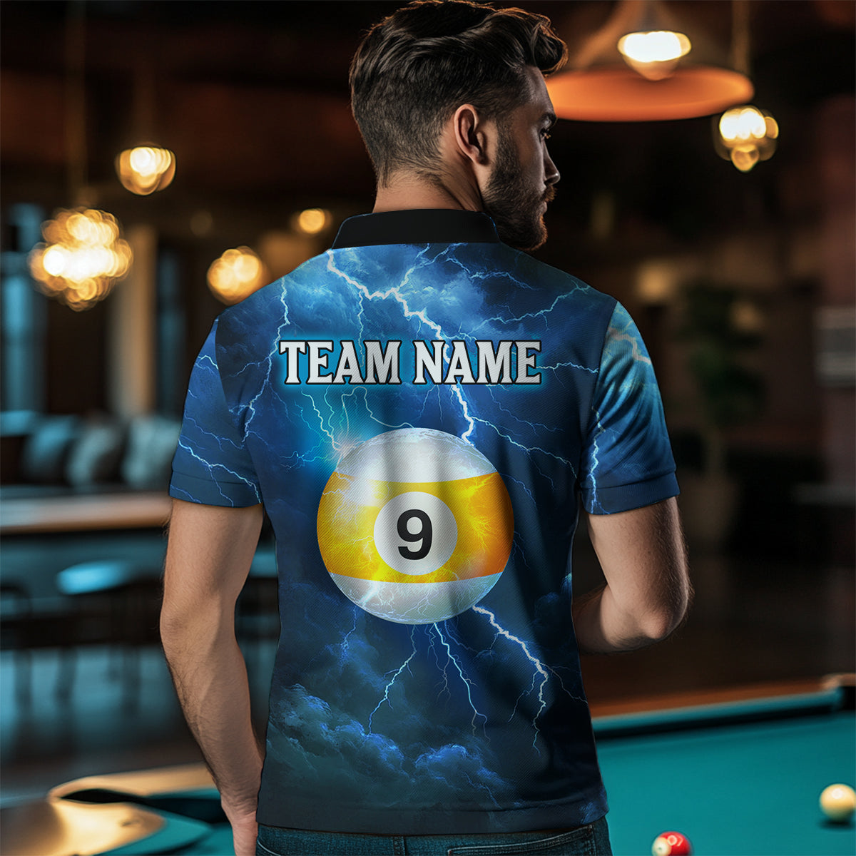 Blue Thunder 8 & 9 Ball Billiards Shirt Men Team Polo & 1/4 Zip Shirts Billiard Jersey NNT17