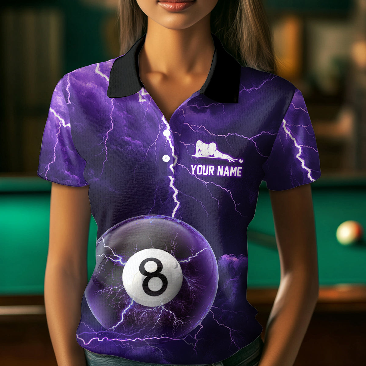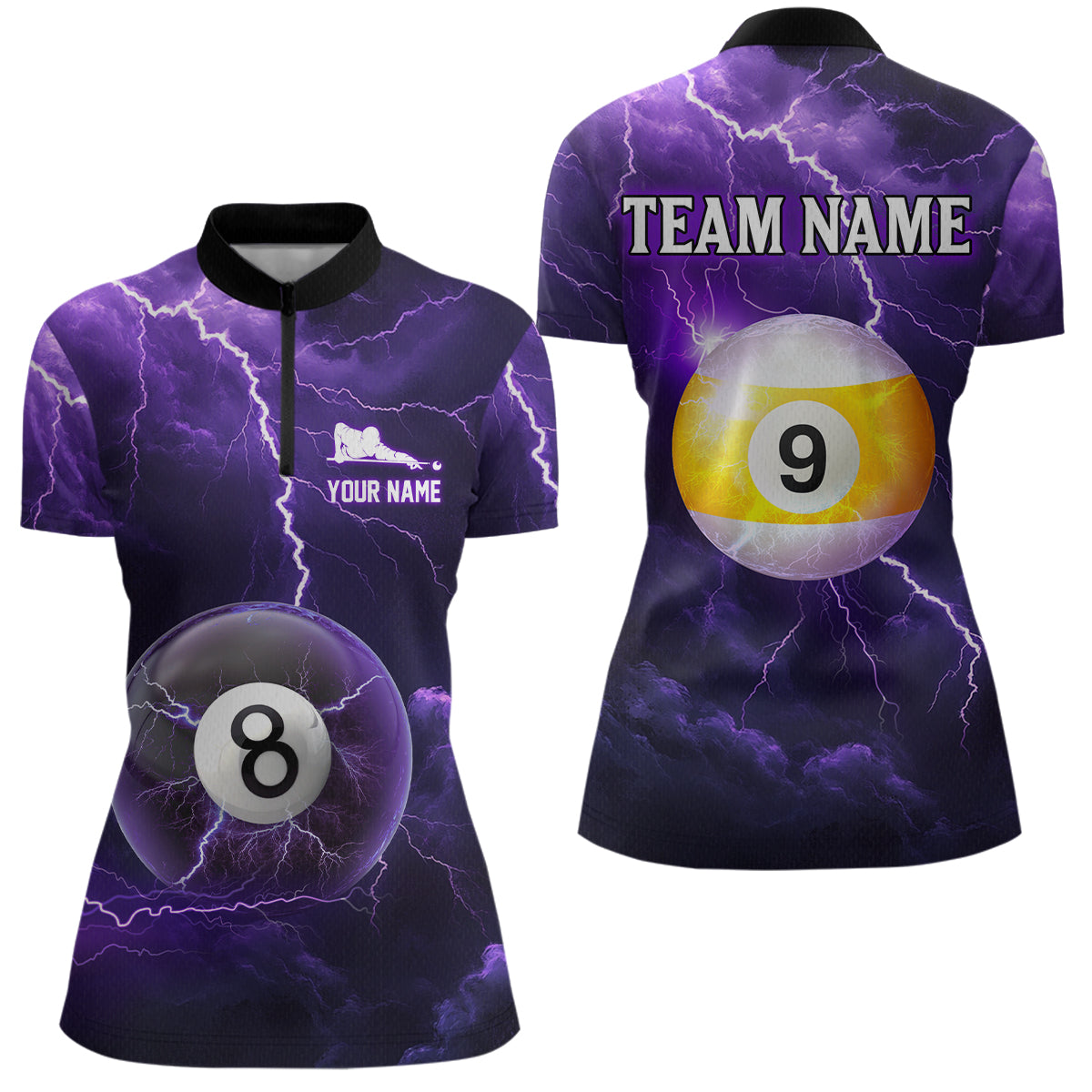 Purple Thunder 8 & 9 Ball Billiards Shirt Women Team Polo & 1/4 Zip Shirts Billiard Jersey NNT17