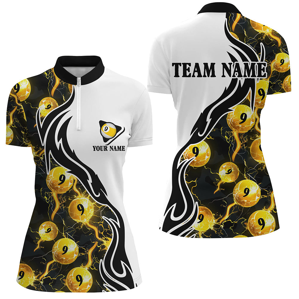 Yellow 9 Ball Pool Thunder Lighting Custom Billiard Shirts For Women Team League Billiard Jerseys TDM1902
